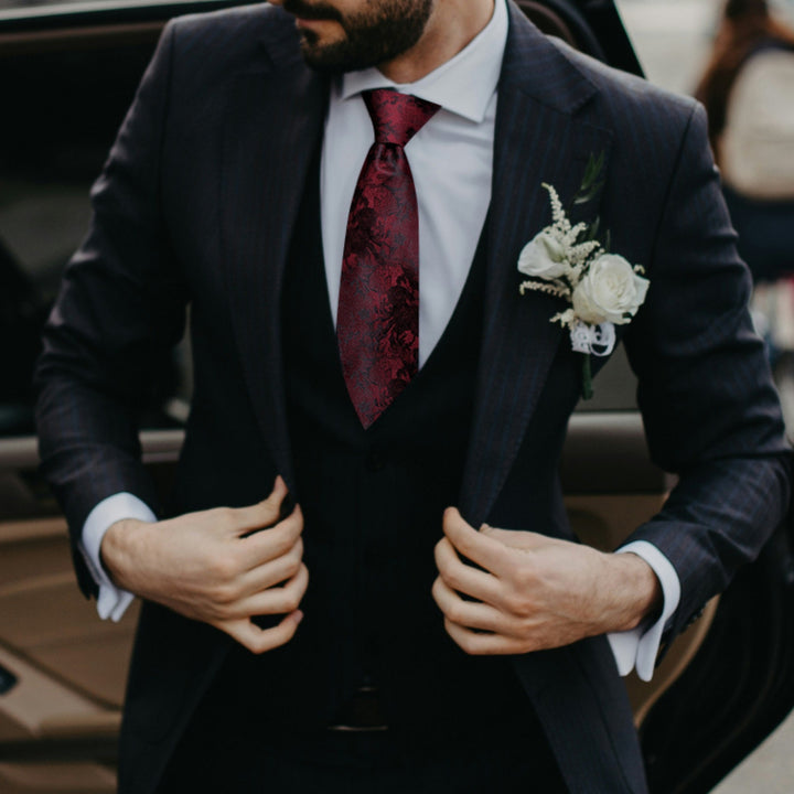 Ties2you Burgundy Tie for Mens Silk Floral Wedding Necktie Pocket Square Cufflinks