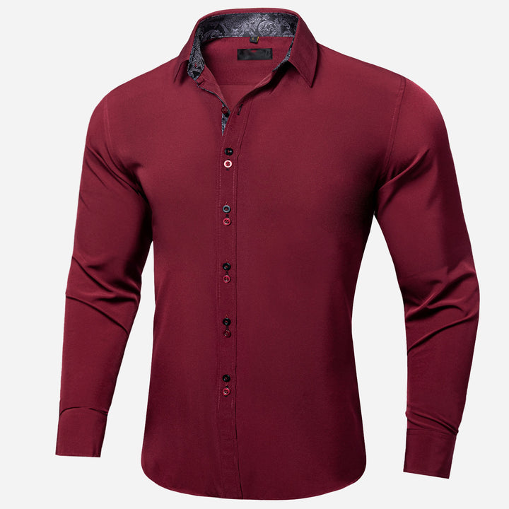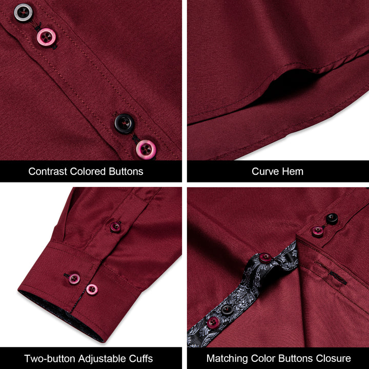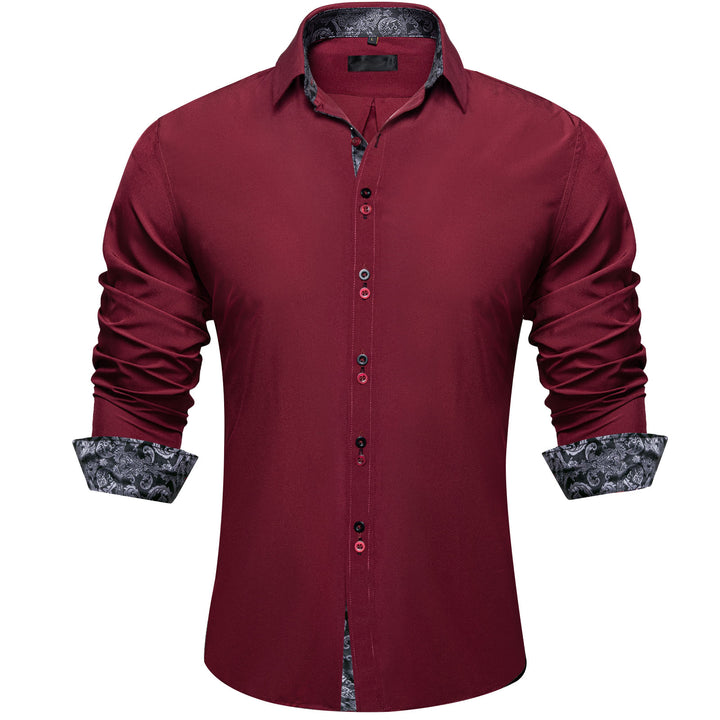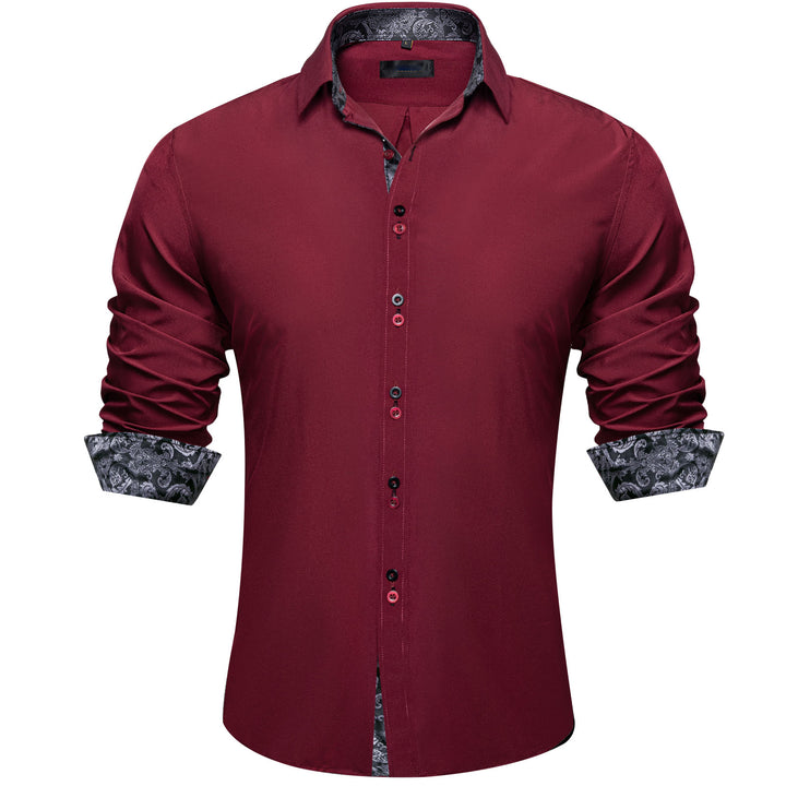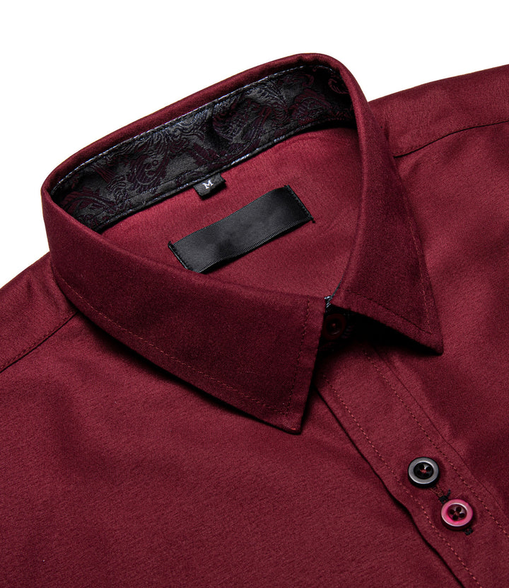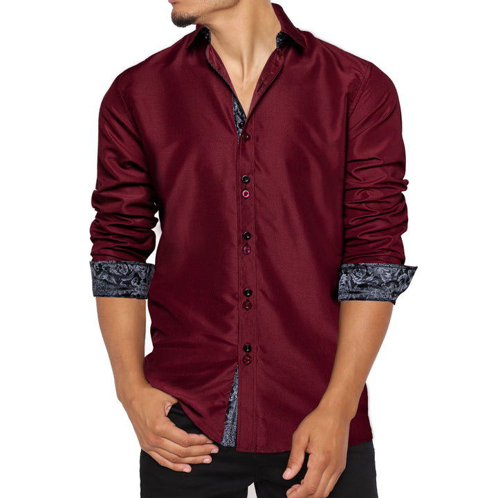 Button Down Shirt Burgundy Black Paisley Stitching Silk Men's slim fit shirts