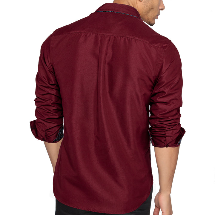 Button Down Shirt Burgundy Black Paisley Stitching cotton shirts