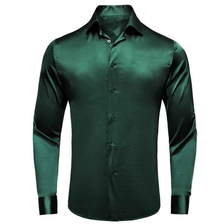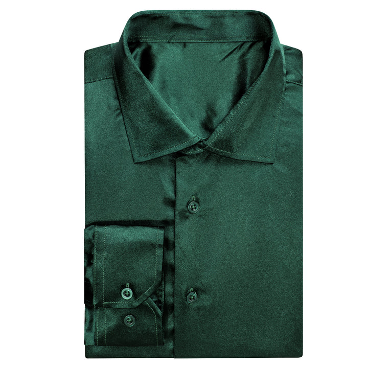 Ties2you Hunter Green Satin Dress Shirts Mens Solid Long Sleeve Button Down Formal Shirt