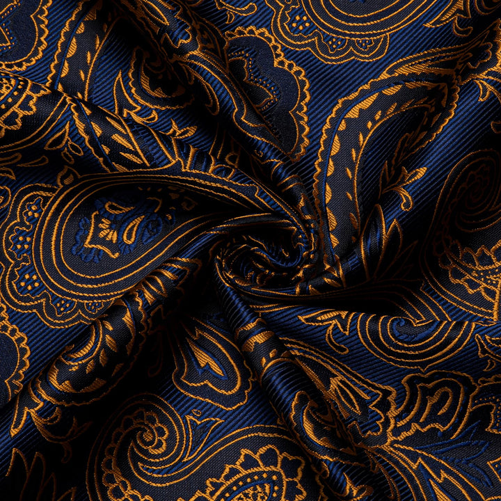 Ties2you Button Down Shirt Blue Gold Paisley Long Sleeve Dress Shirts for Men