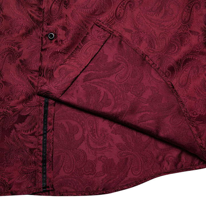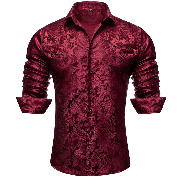 Red Black Paisley Silk Men's Long Sleeve burgundy shirt