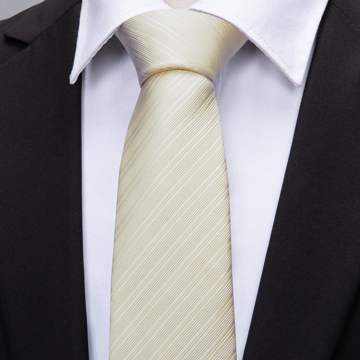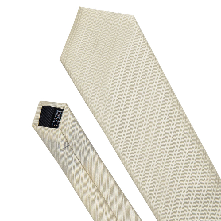 Champagne Striped Silk Men's Tie Hanky Cufflinks Set