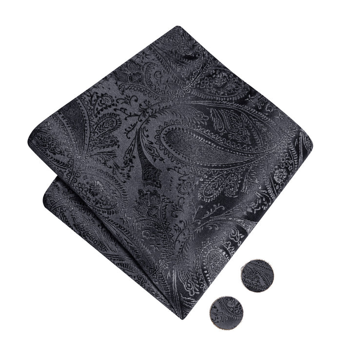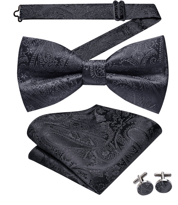 Ties2you Charcoal Grey Paisley Bowtie Pre-tied Bow Tie Handkerchief Cufflinks Set