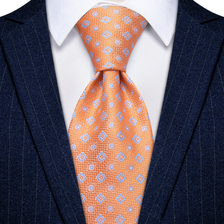 Ties2you Coral Tie Blue Floral Necktie Pocket Square Cufflinks Set