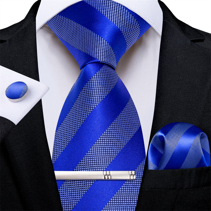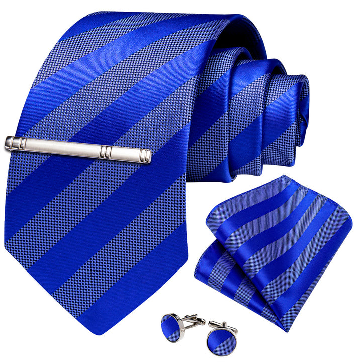 Ties2you Dark Blue Striped Men's Tie Pocket Square Cufflinks Set