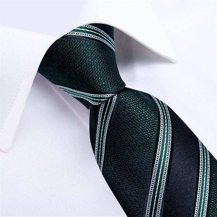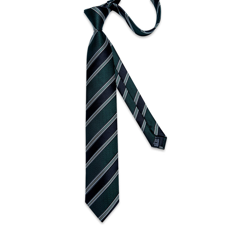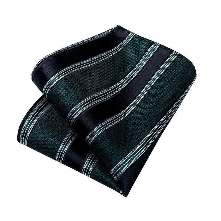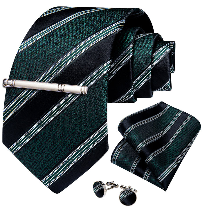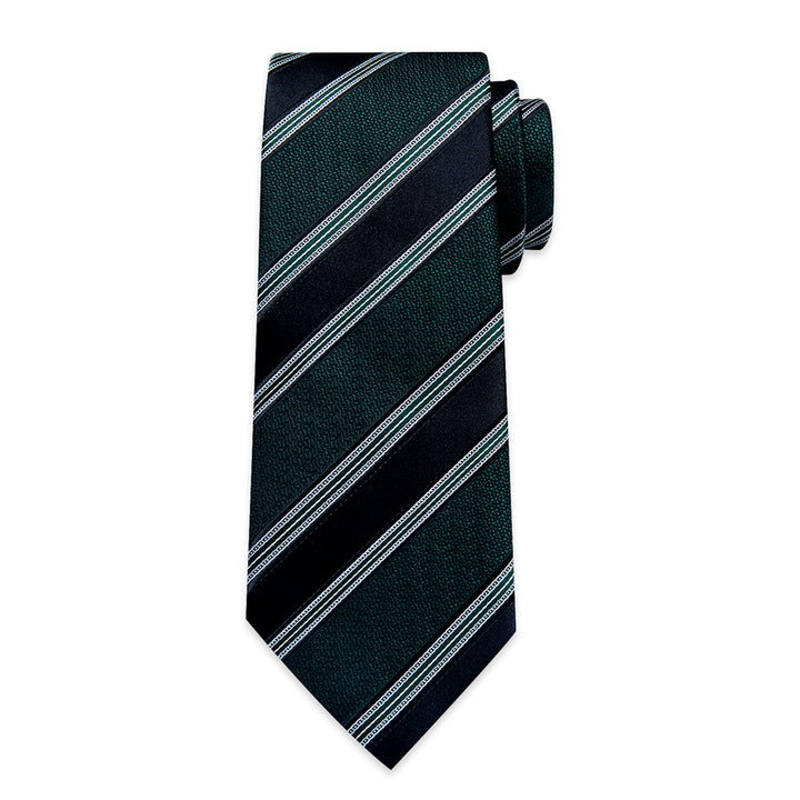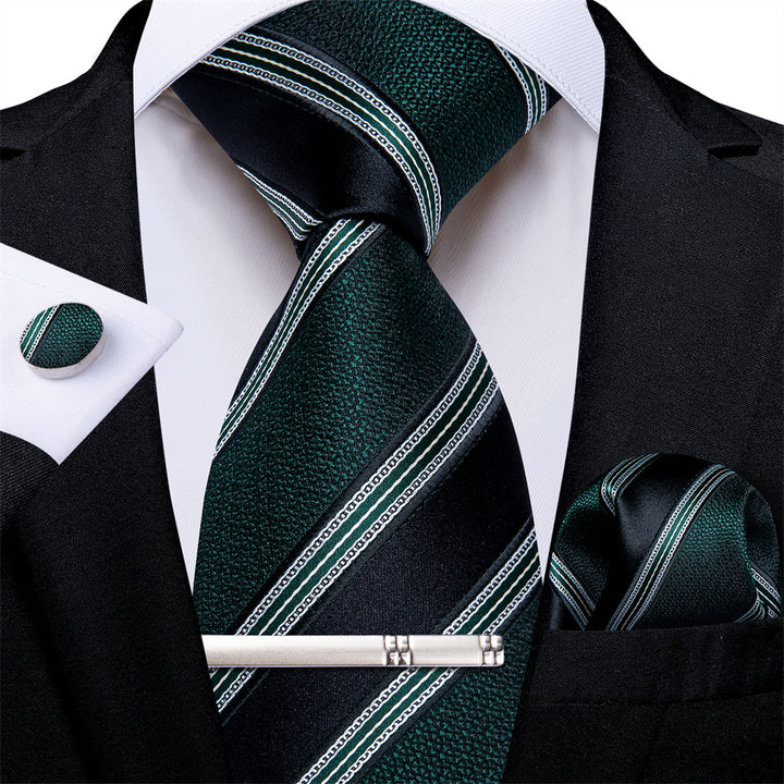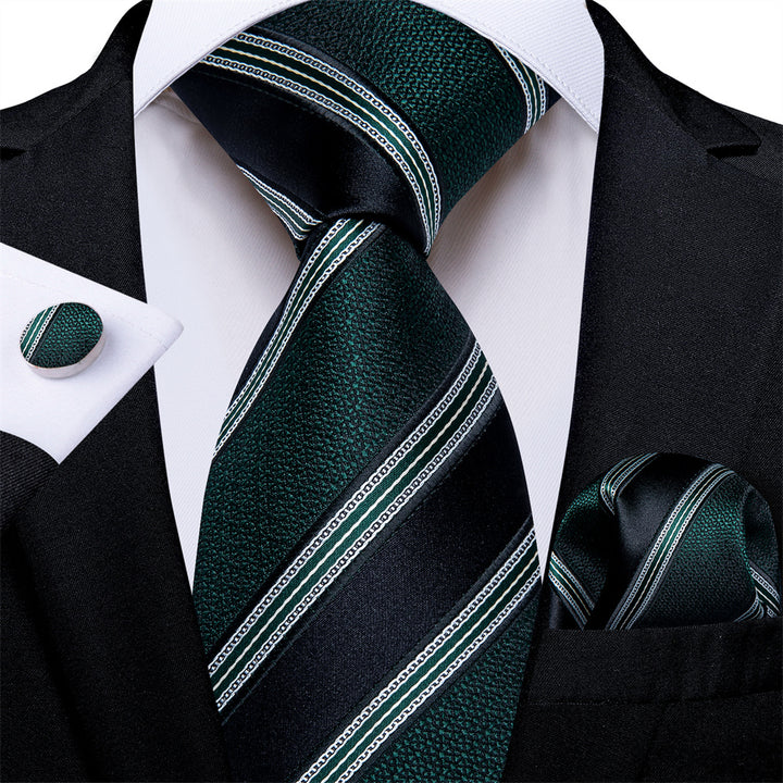 Ties2you Dark Green Black Striped Men's Tie Hanky Cufflinks Set