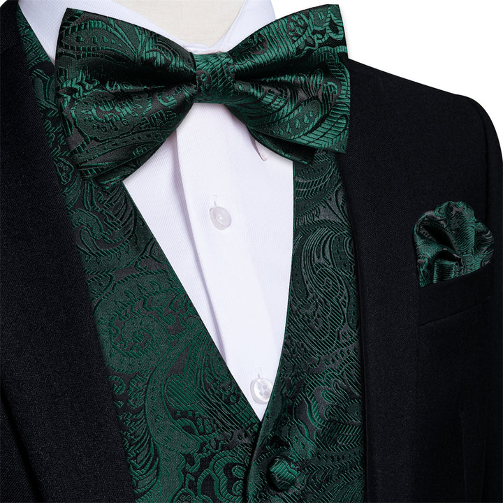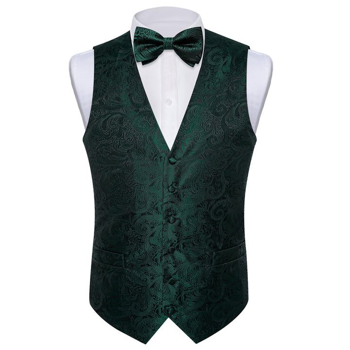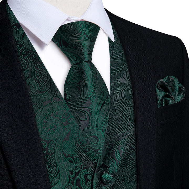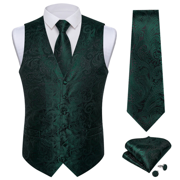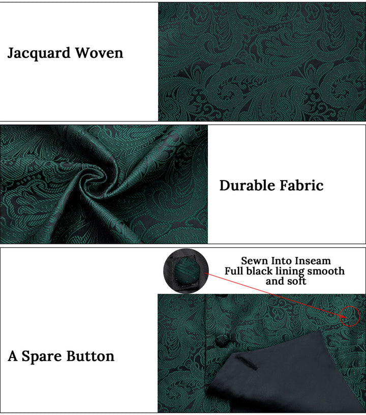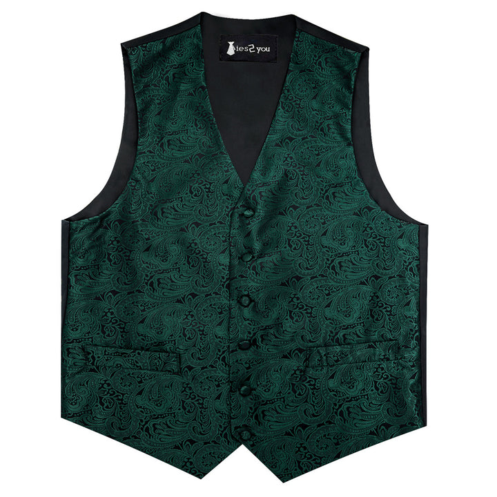 Ties2you Emerald Green Vest Paisley V-Neck Silk Waistcoat Hanky Cufflinks Tie Set