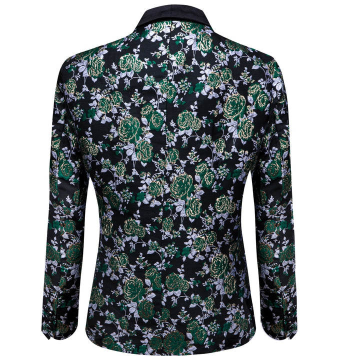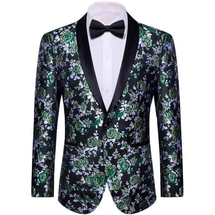 Ties2you Dark Green Silver Floral Silk Shawl Collar Slim Fit Suit for Men