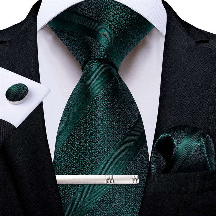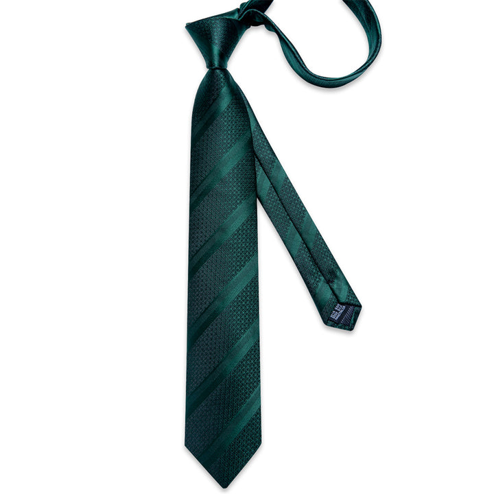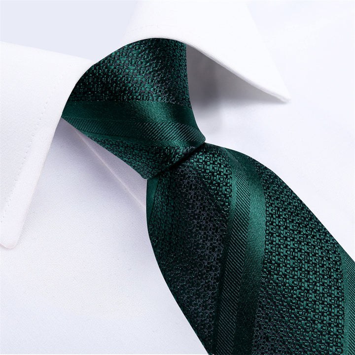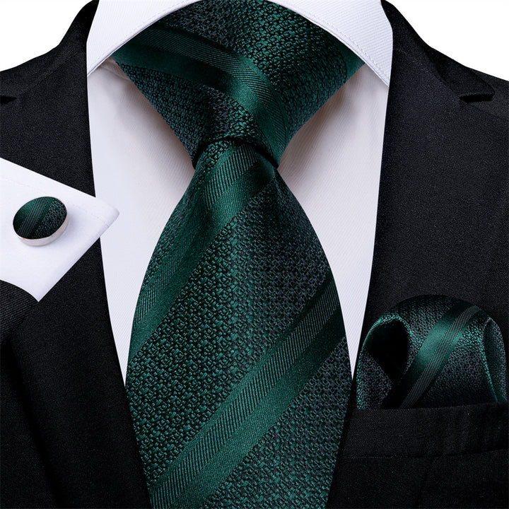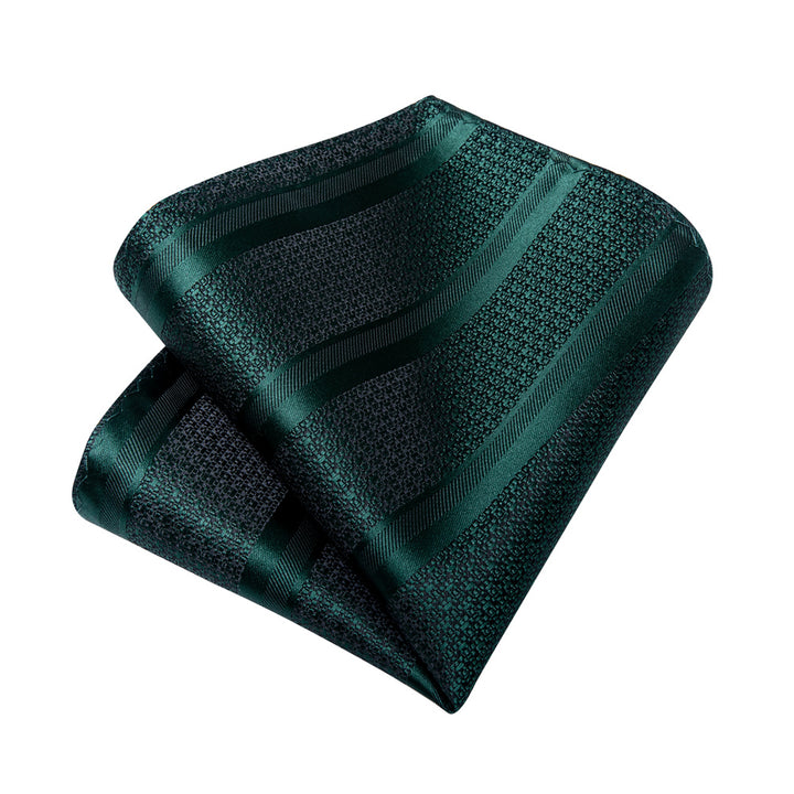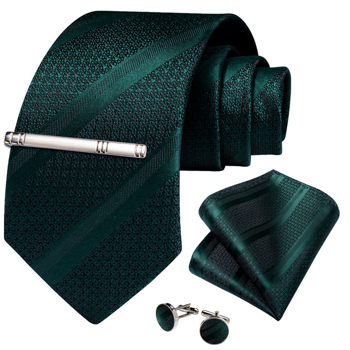 Ties2you Dark Green Striped Men's Tie Hanky Cufflinks Set