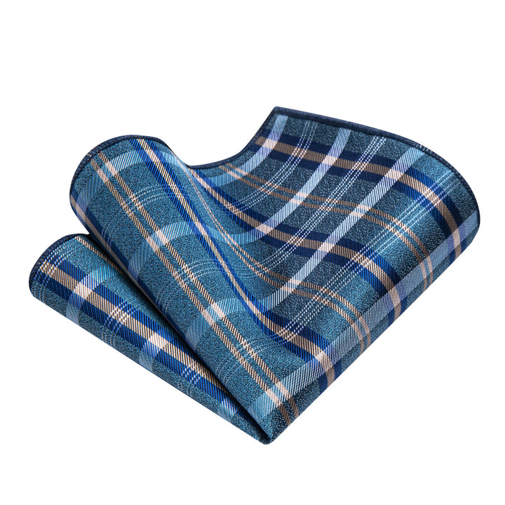 Ties2you Dark Turquoise Tan Striped Necktie Hanky Cufflinks Set