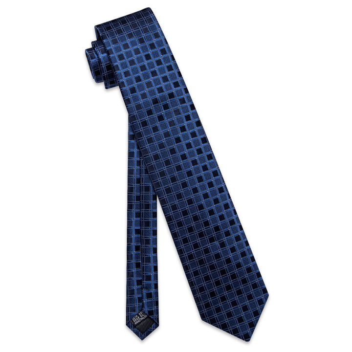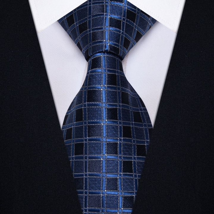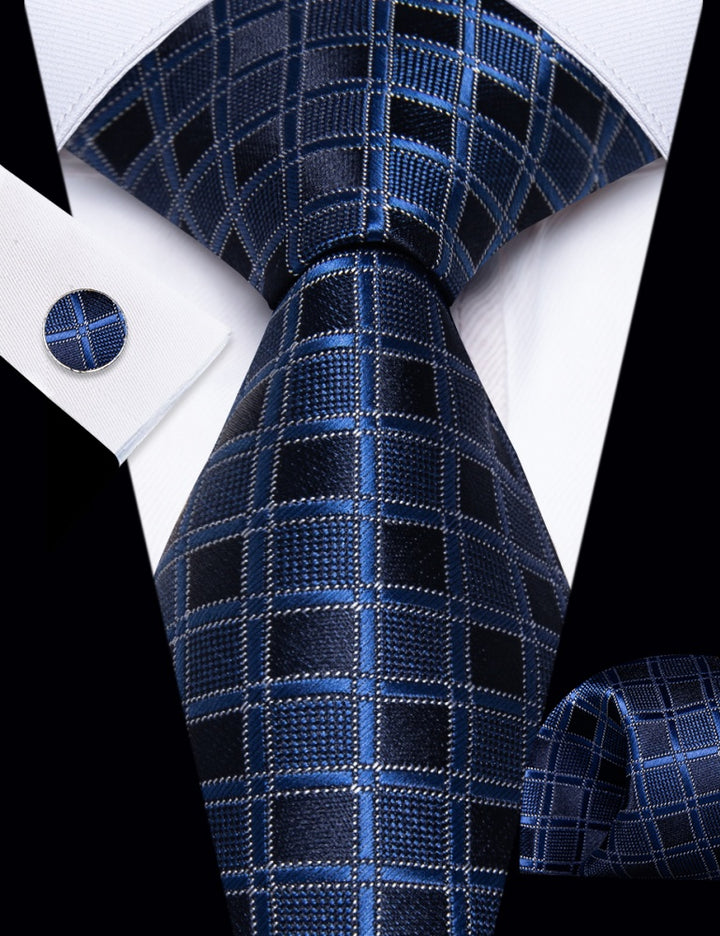 Ties2you Deep Blue Plaid Tie Men Silk Necktie Hanky Cufflinks Set
