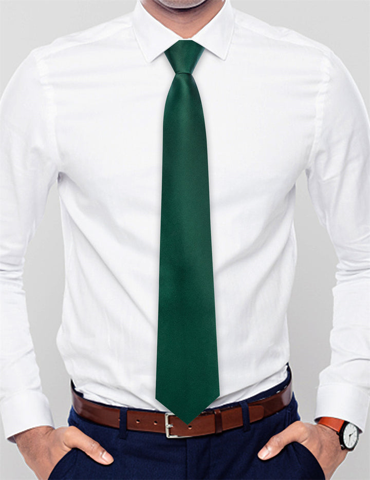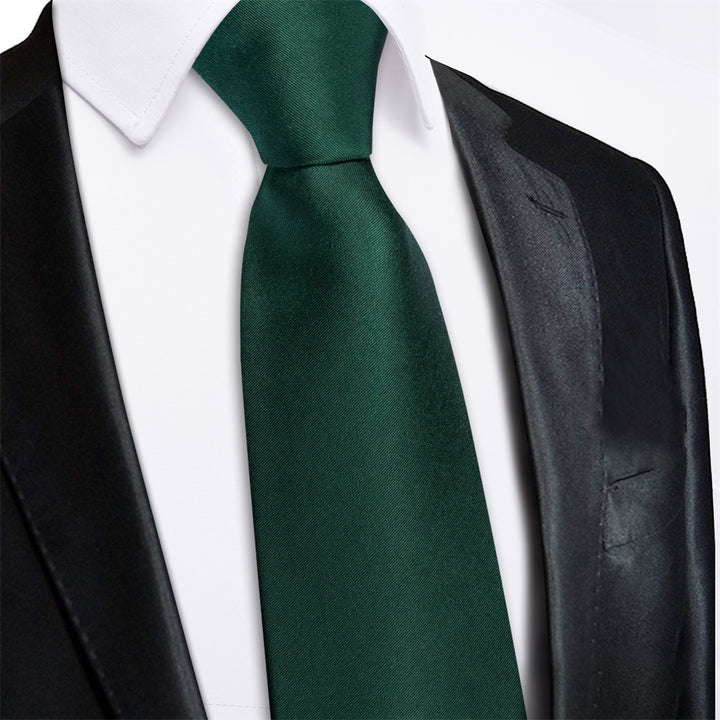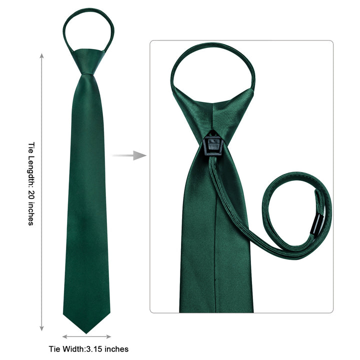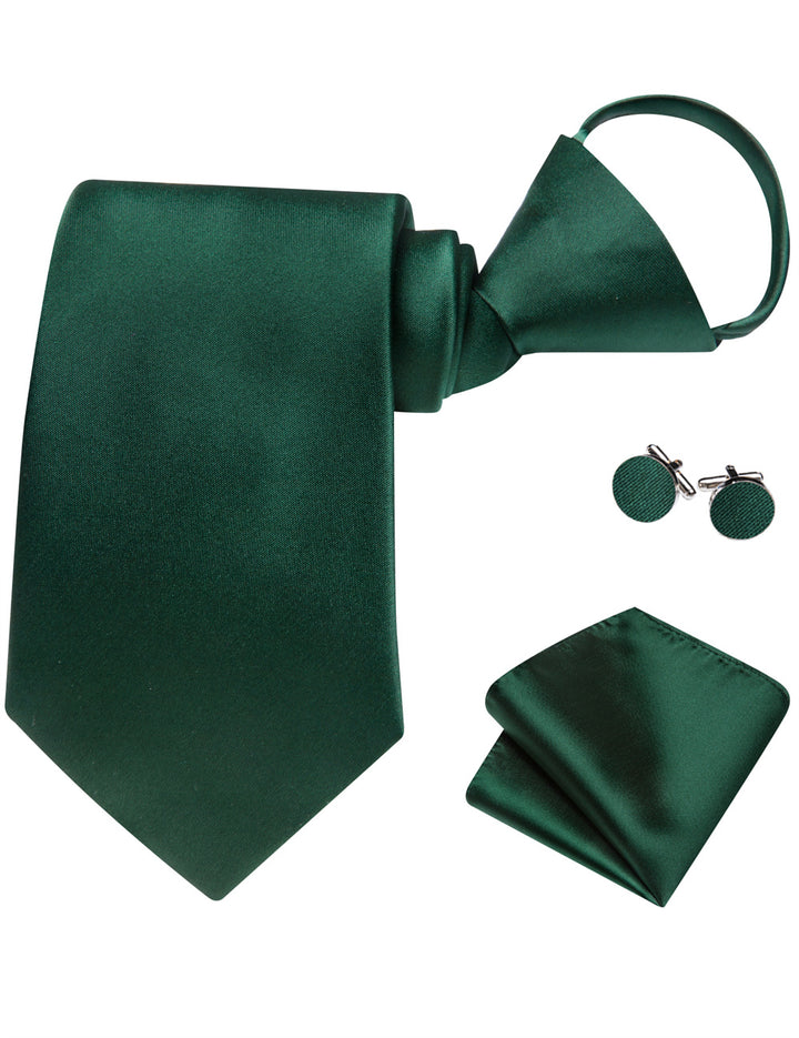Ties2you Deep Green Solid Lazy Mens Business Easy-pull Silk Tie Pocket Square Cufflinks Set