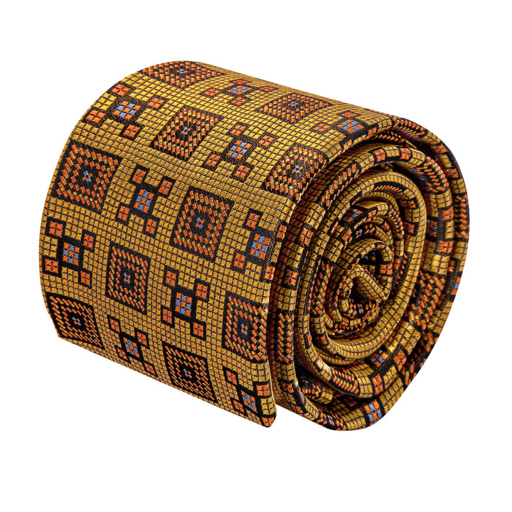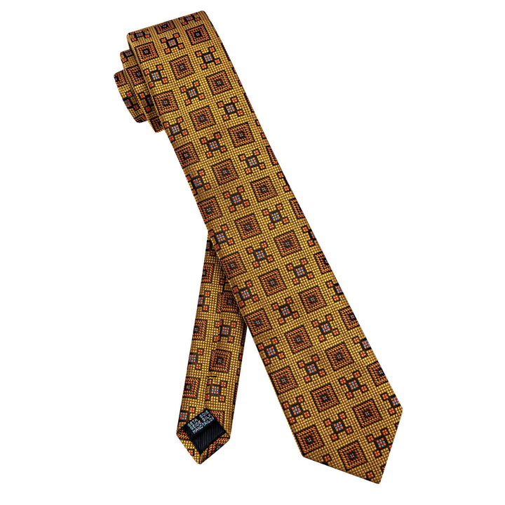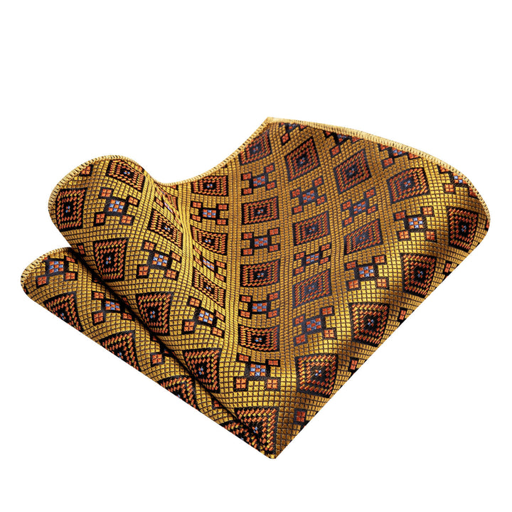Ties2you Drab Brown Geometric Necktie Pocket Square Cufflinks Set