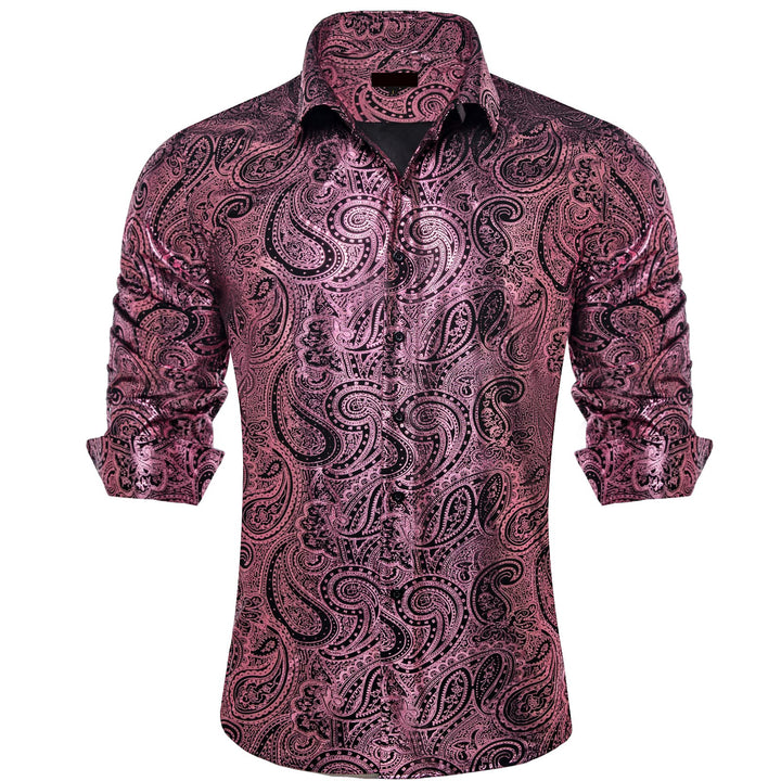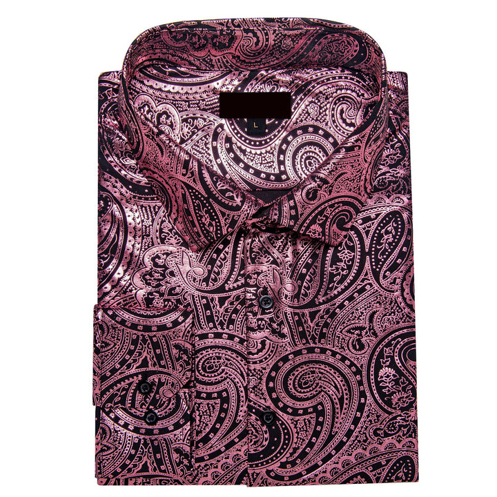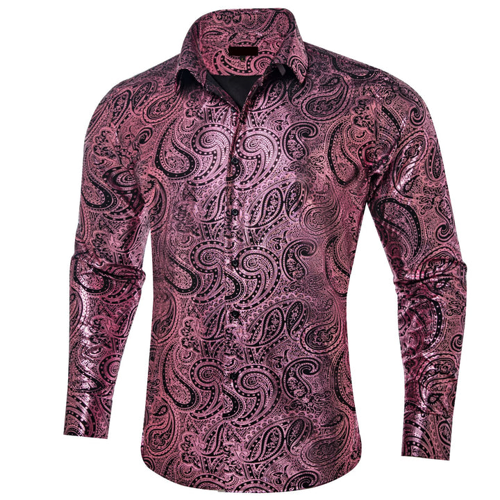 Ties2you Dress Shirt Blush Pink Paisley Hot Stamping Long Sleeve Mens Shirt