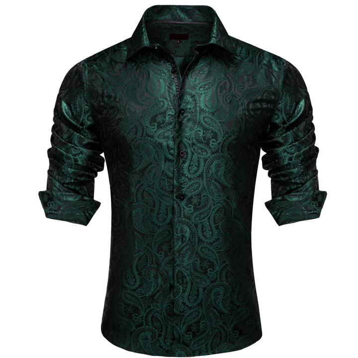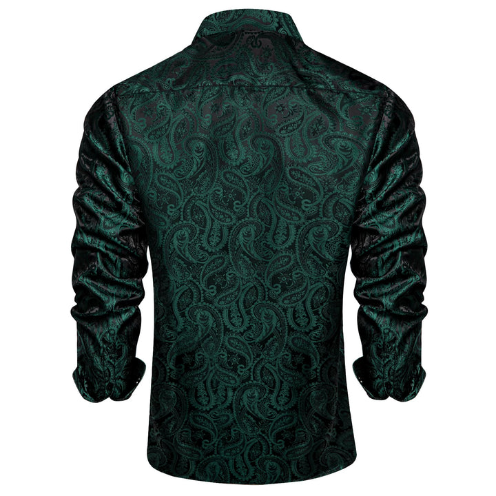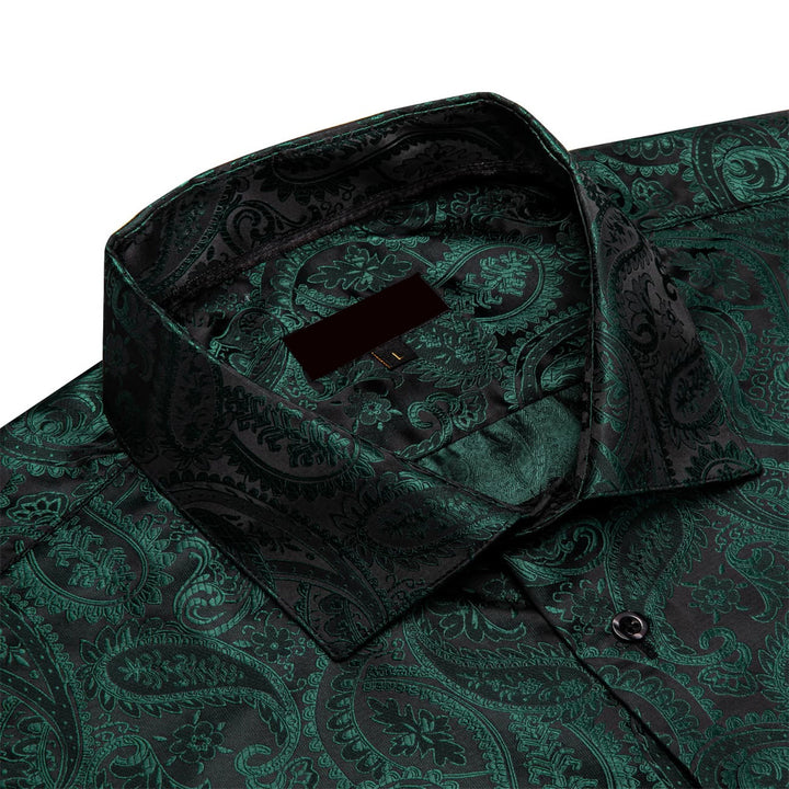 Ties2you Dress Shirt Forest Green Paisley Silk Button Down Long Sleeve Shirt for Men