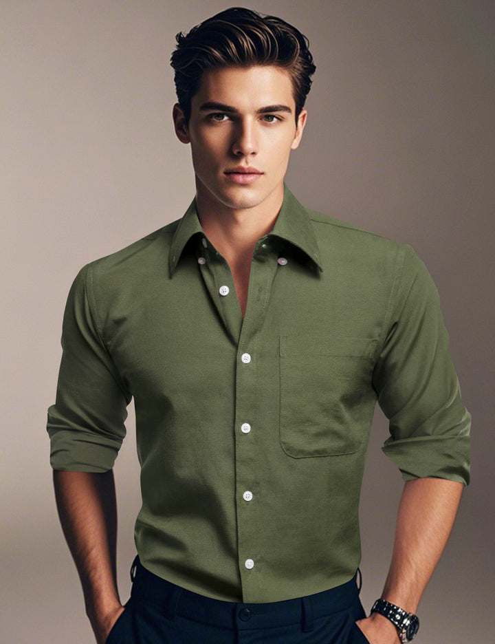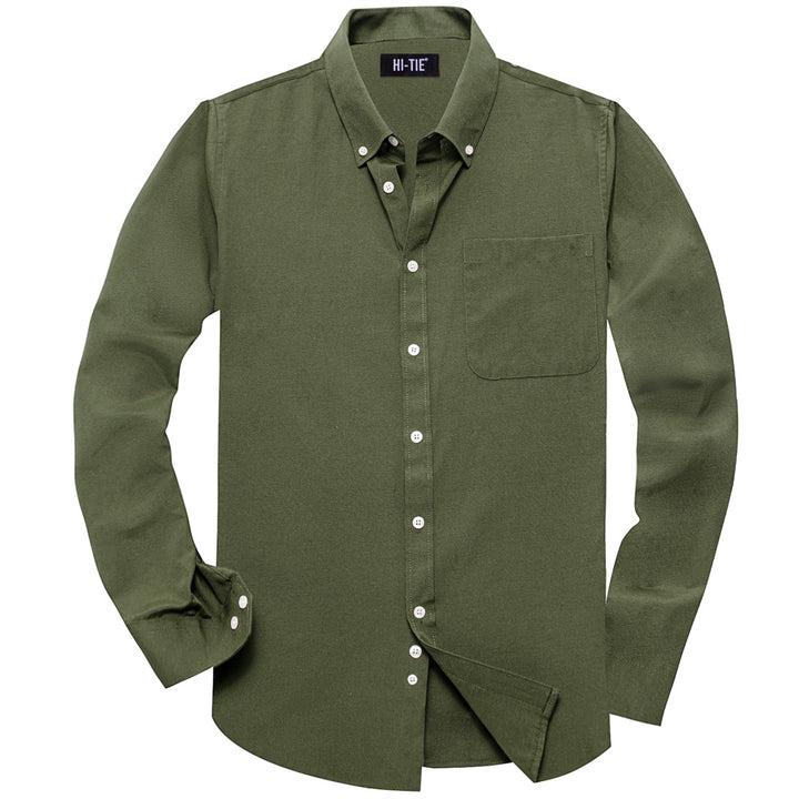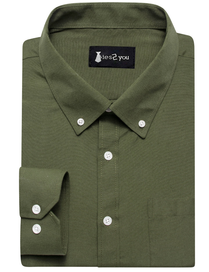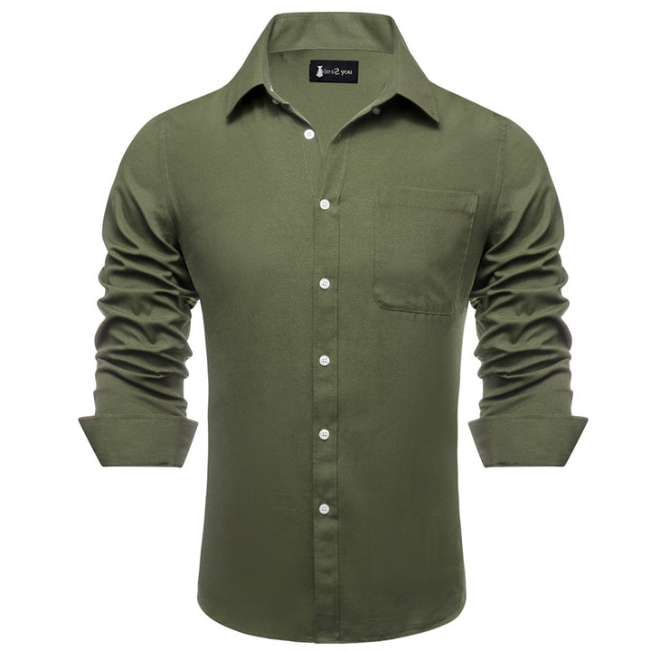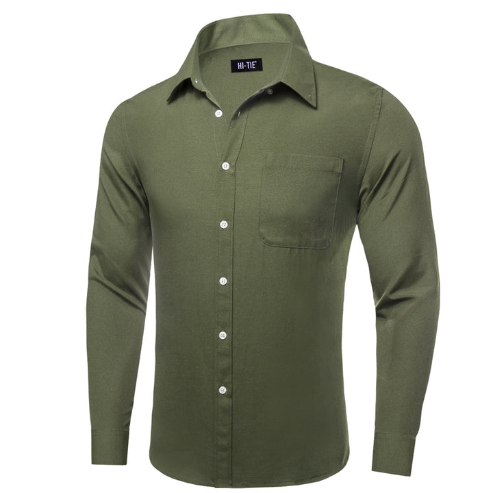 Ties2you Dress Shirt Hunter Green Solid Button Up Silk Long Sleeve Men's Shirt