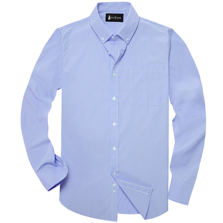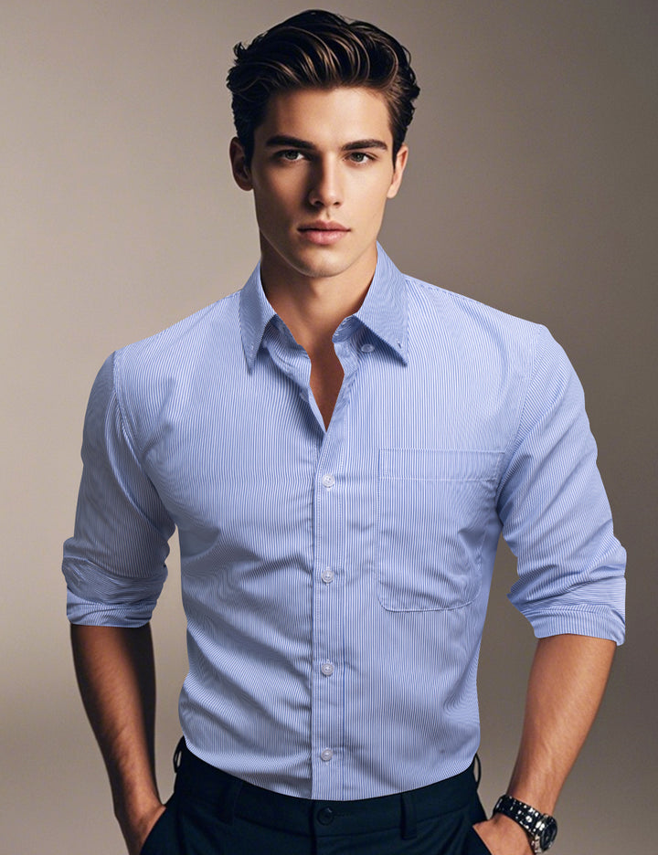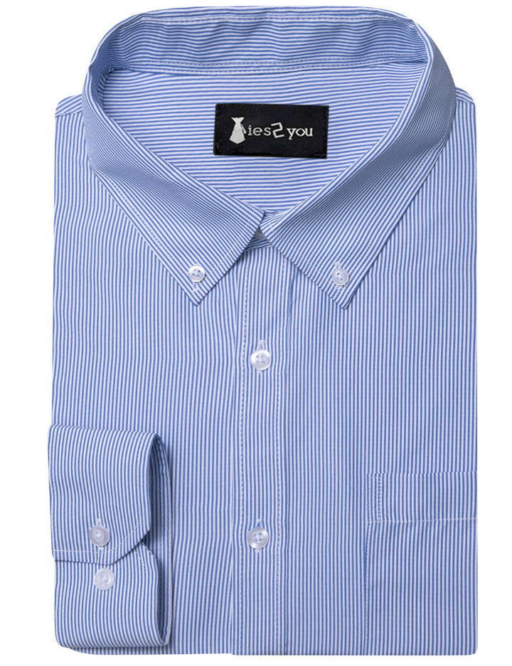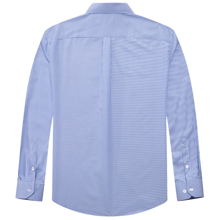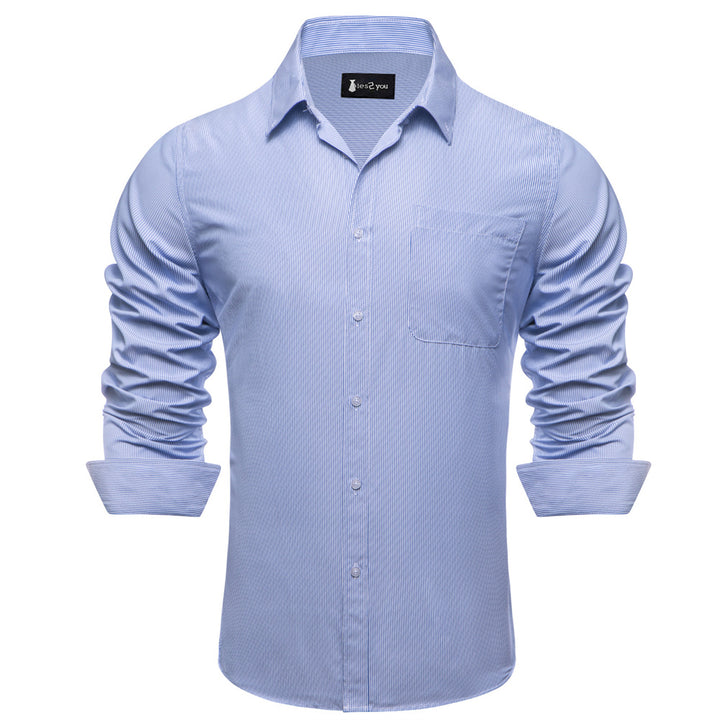 Ties2you Dress Shirt Light Blue Striped Button Up Silk Long Sleeve Men's Shirt
