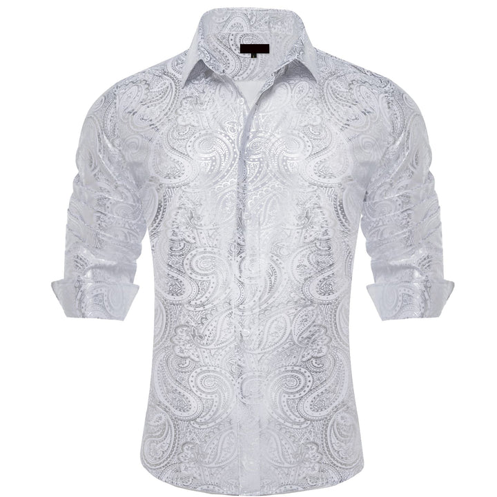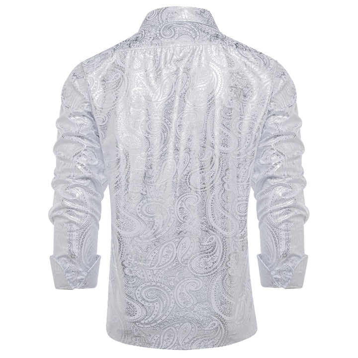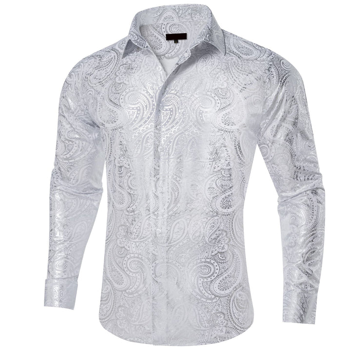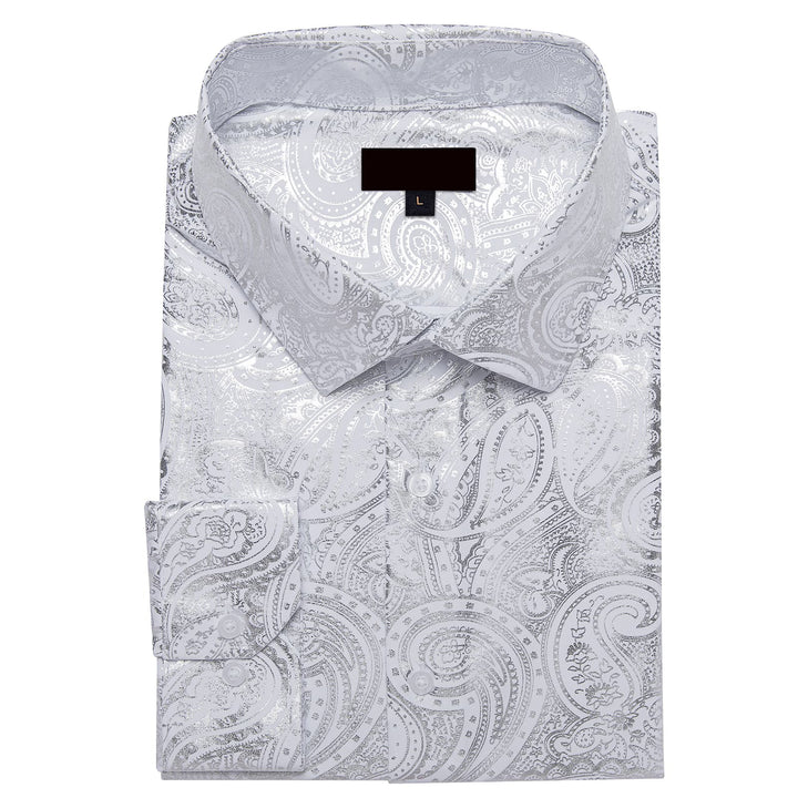 Ties2you Dress Shirt Light Grey Paisley Hot Stamping Long Sleeve Mens Shirt