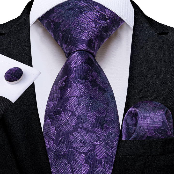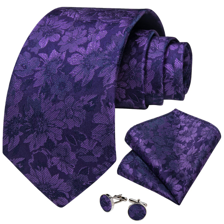 Ties2you Mens Purple Necktie Floral Formal Tuexdot Tie Handkerchief Cufflinks Set