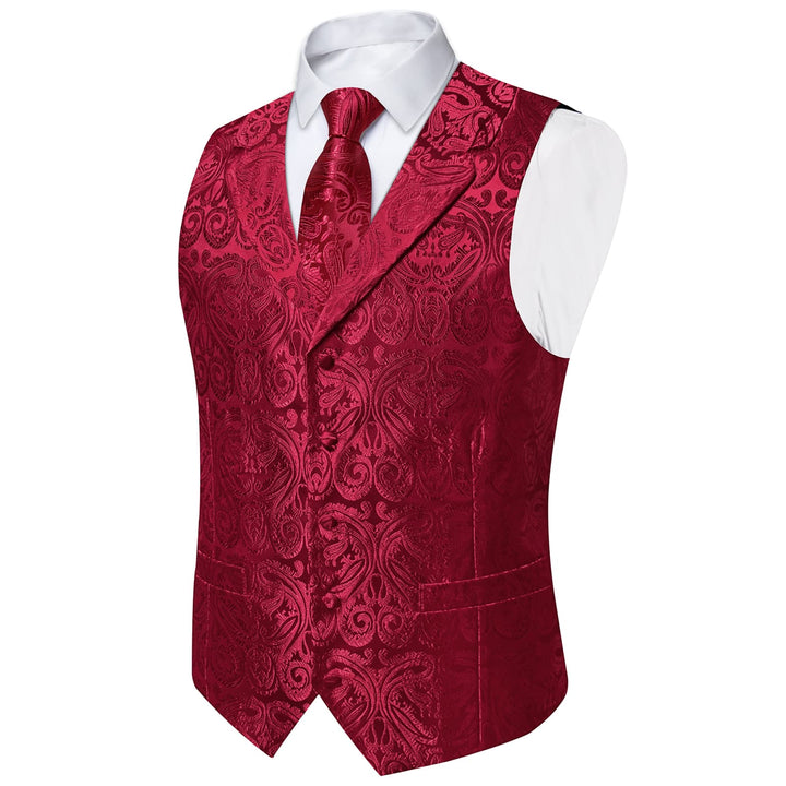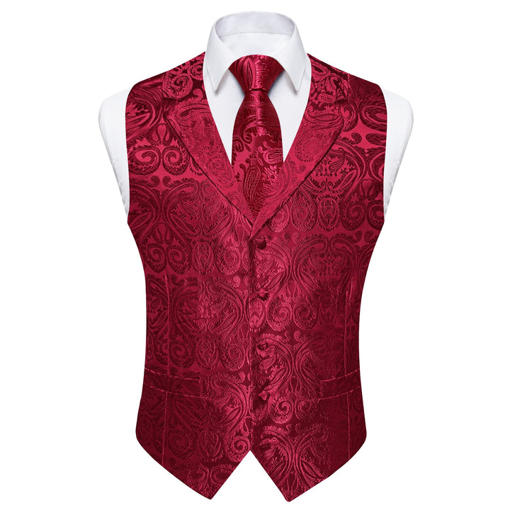 Ties2you Dress Vest Burgundy Paisley Notched Collar Silk Mens Work Vest Tie Set
