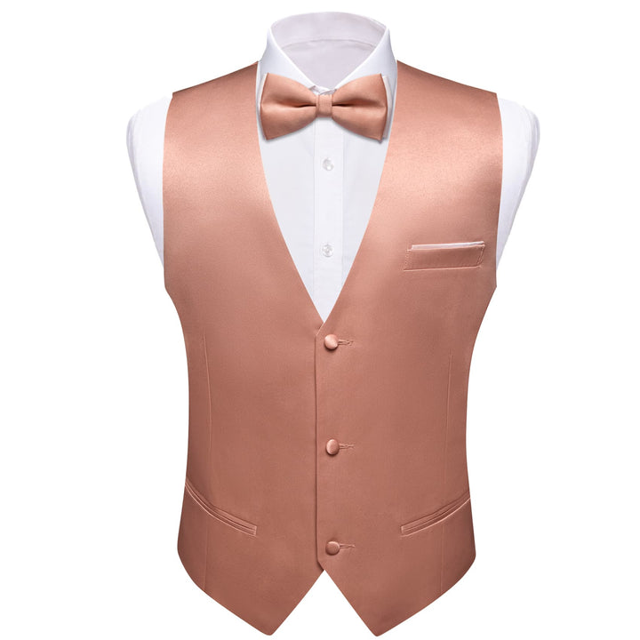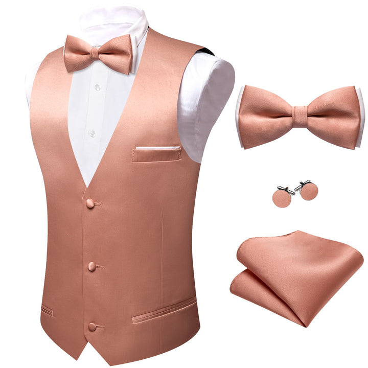 Ties2you Dress Vest Light Coral Solid V-Neck Waistcoat Mens Vest Bow Tie Set