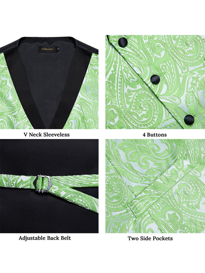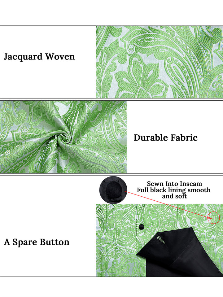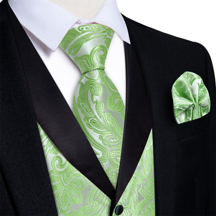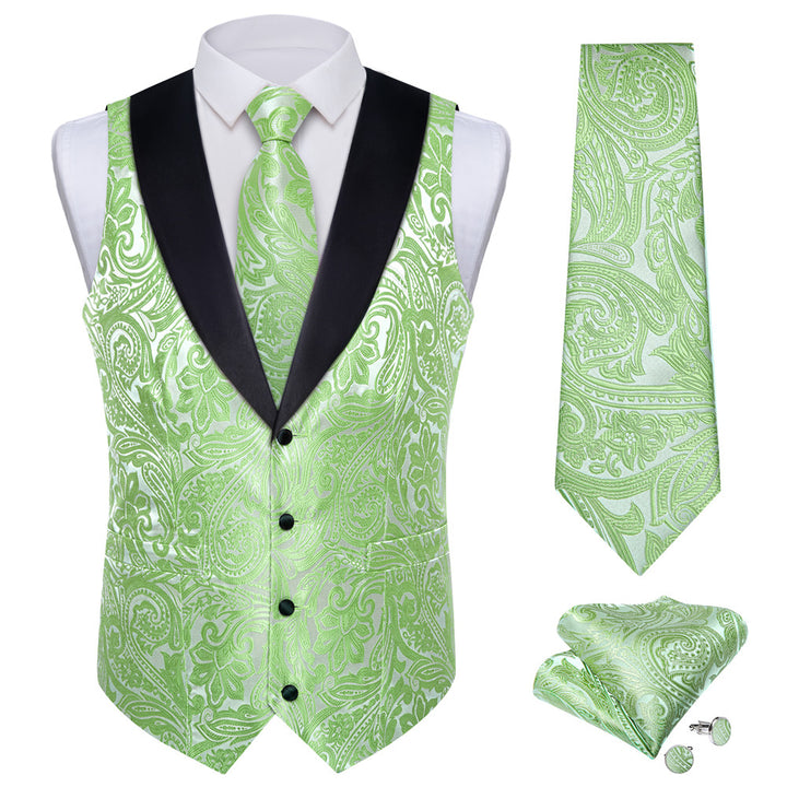 Ties2you Dress Vest Light Green Paisley Shawl Collar Silk Mens Waistcoat Tie Set