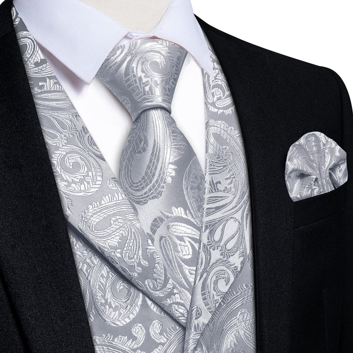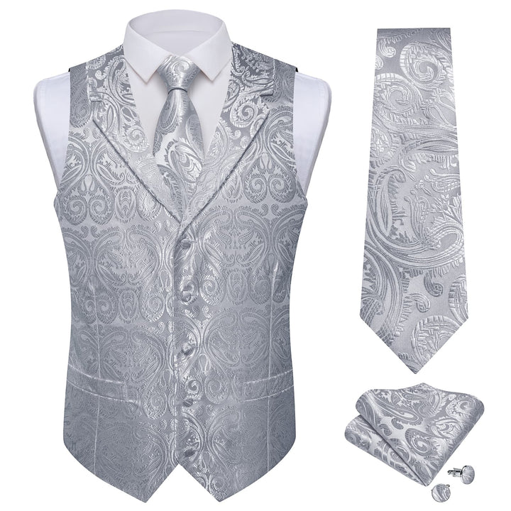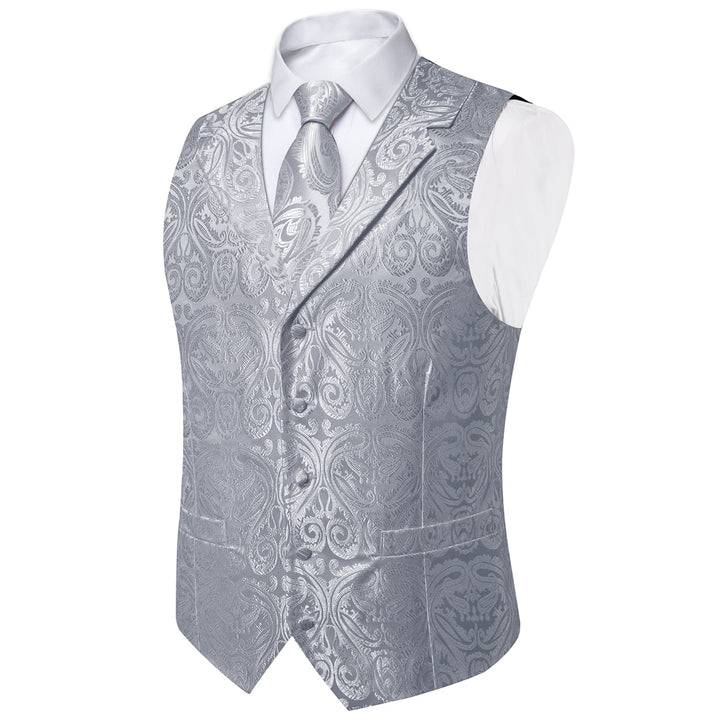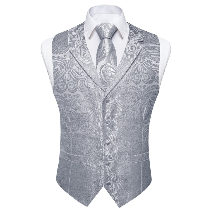 Ties2you Dress Vest Manatee Grey Paisley Notched Collar Silk Mens Work Vest Tie Set