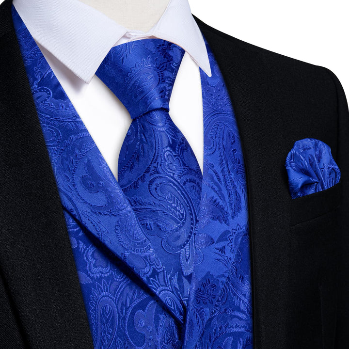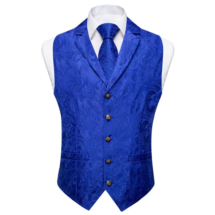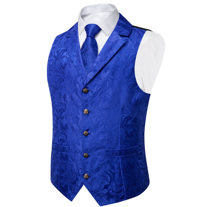 Ties2you Dress Vest Royal Blue Paisley Notched Collar Silk Mens Waistcoat Tie Set
