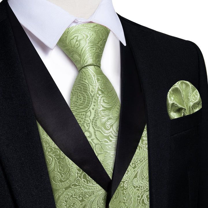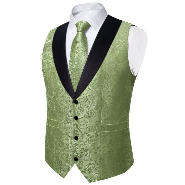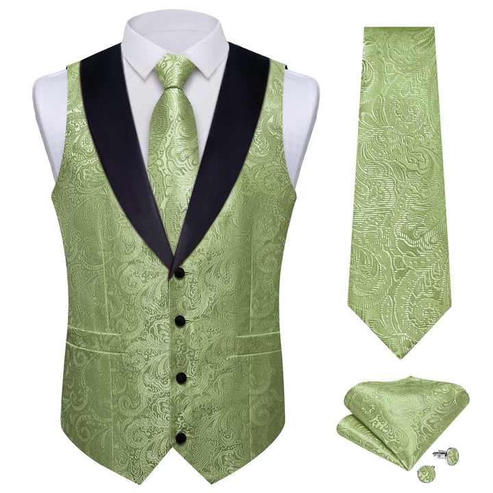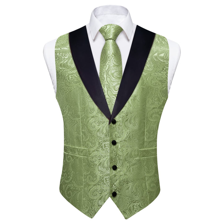 Ties2you Shawl Collar Dress Vest Sage Green Paisley Wedding Suit Vest Tie Hanky Cufflinks Set