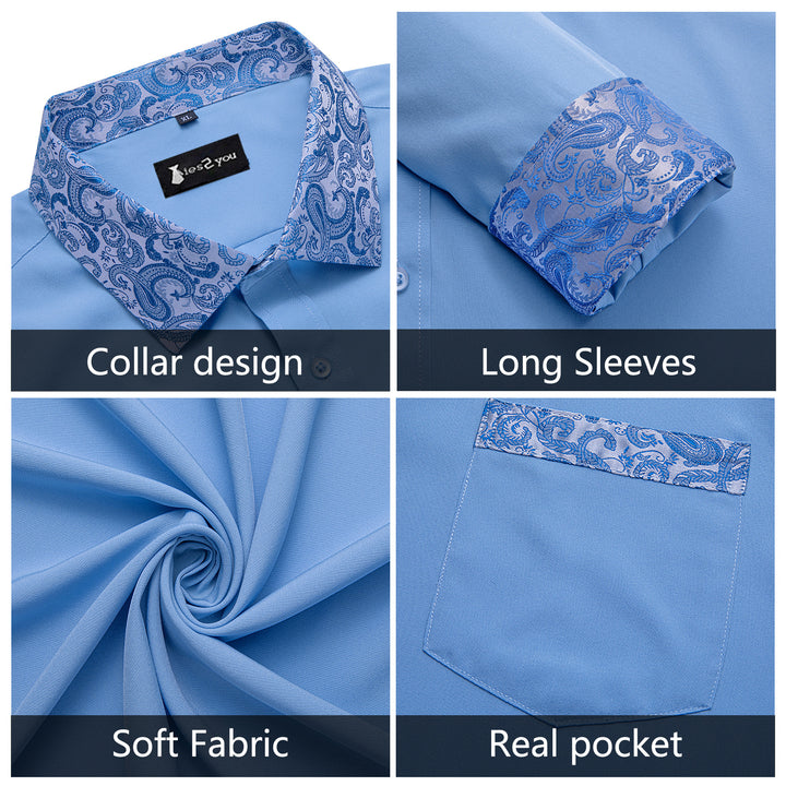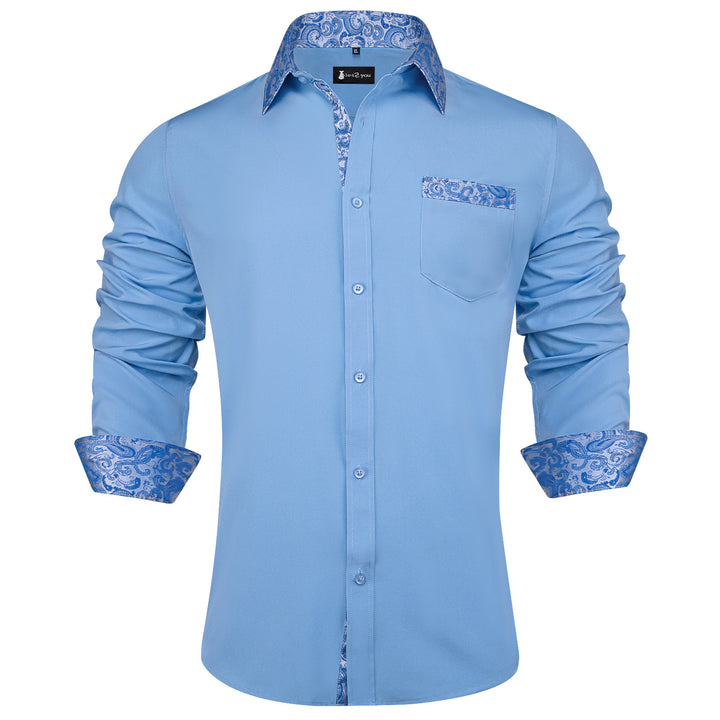 Ties2you Dusty Blue Shirt Mens Splicing Solid Long Sleeve Casual Button Down Shirt