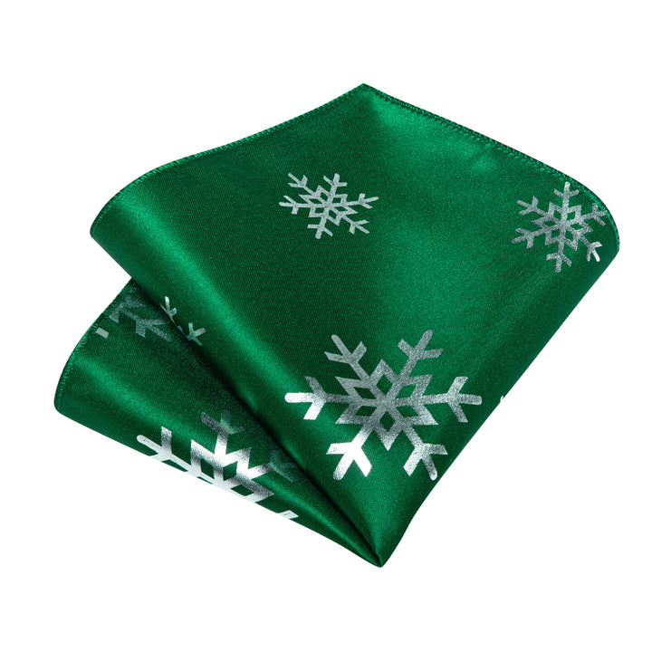 Ties2you Emerald Green Necktie for Men Christmas Snowflake Silk Tie Hanky Cufflinks Set