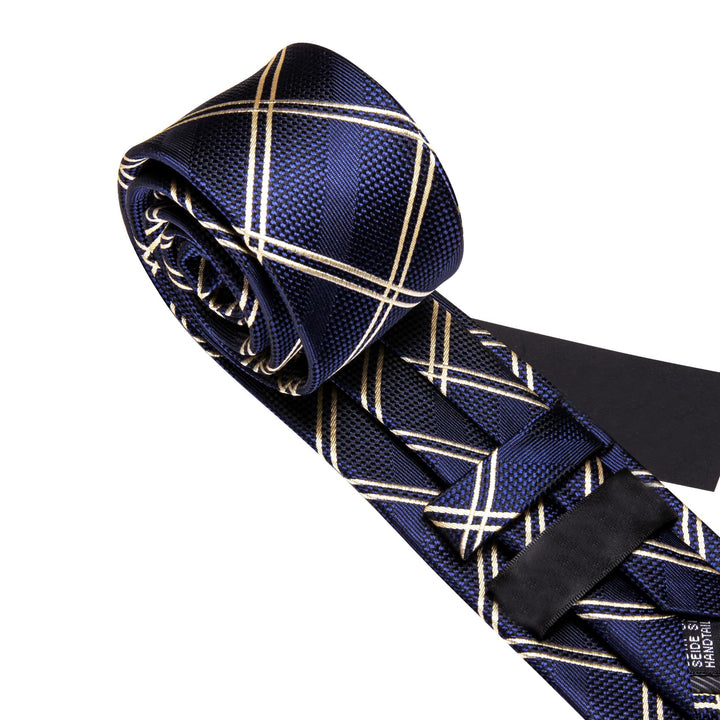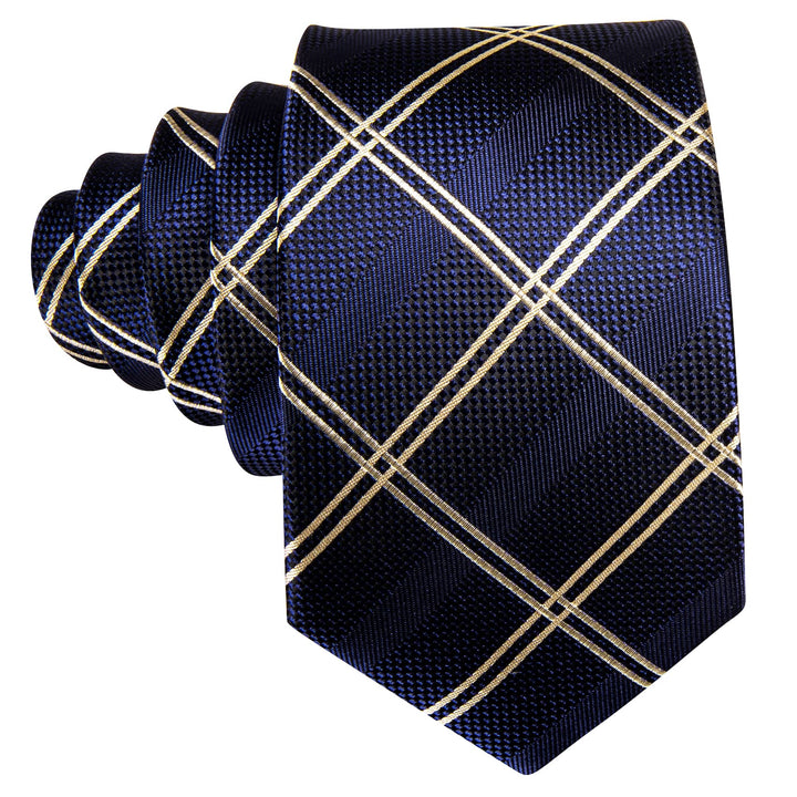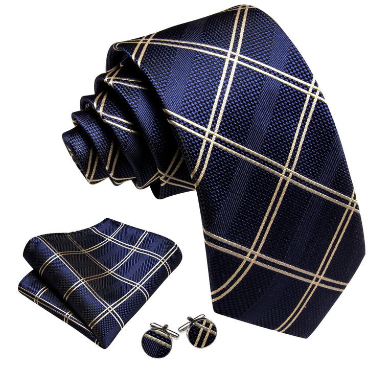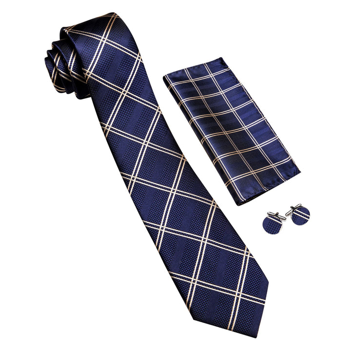 Ties2you Extra Long Tie Navy Blue Plaid 63'' Business Silk Mens Tie Set