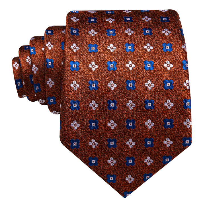 Ties2you Floral Tie Caramel Brown Silk Men's Tie Pocket Square Cufflinks Set