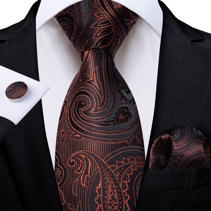 Ties2you Formal Ties Tortilla Brown Paisley Silk Mens Tie Hanky Cufflinks Set for Tuxedo Dress
