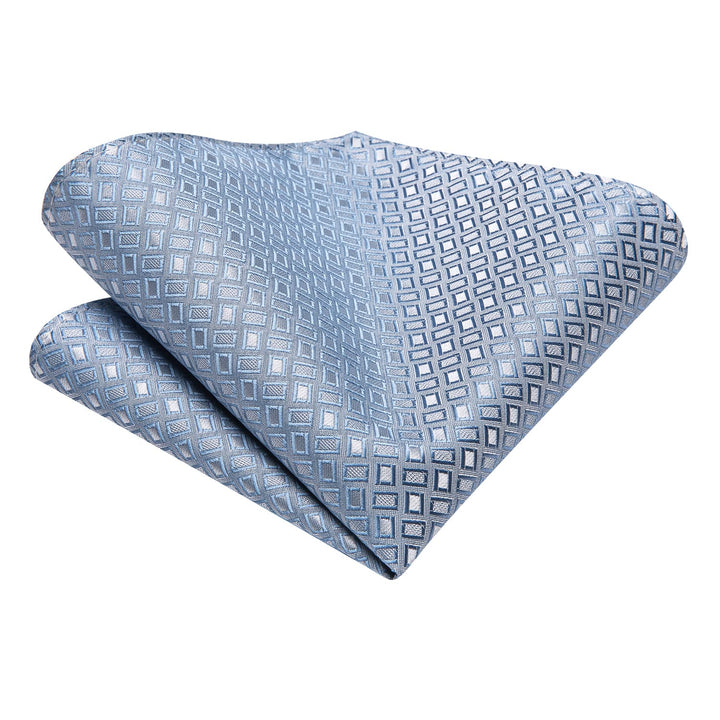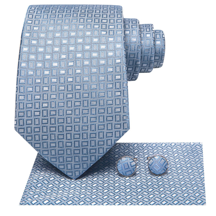 Ties2you Silk Plaid Necktie Formal Icy Blue Texudo Tie Handkercheif Cufflinks Set