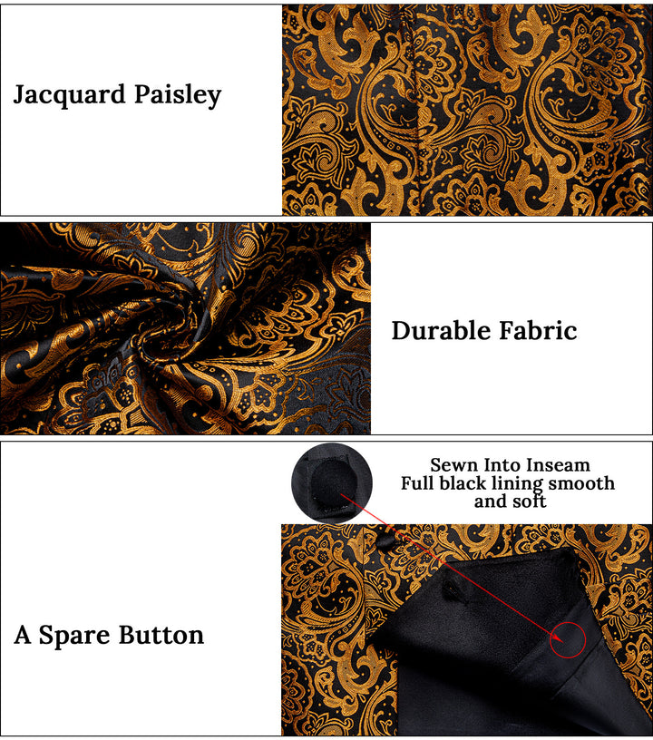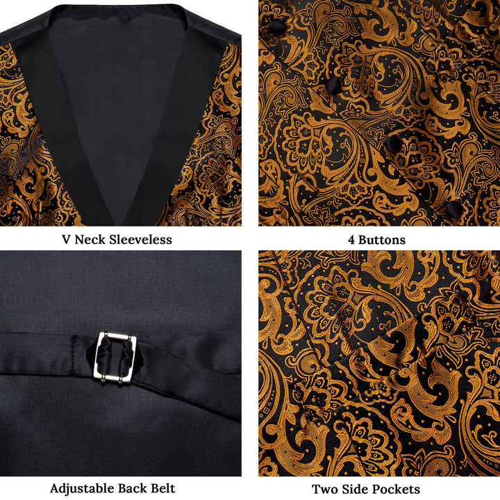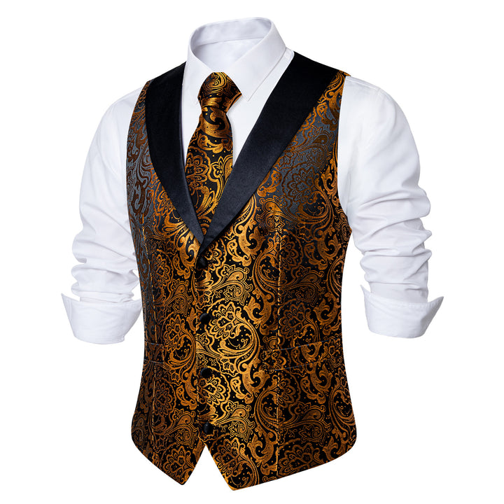 Ties2you Gold Floral Jacquard Waistcoat Shawl Collar Vest Tie Hanky Cufflinks Set for Wedding