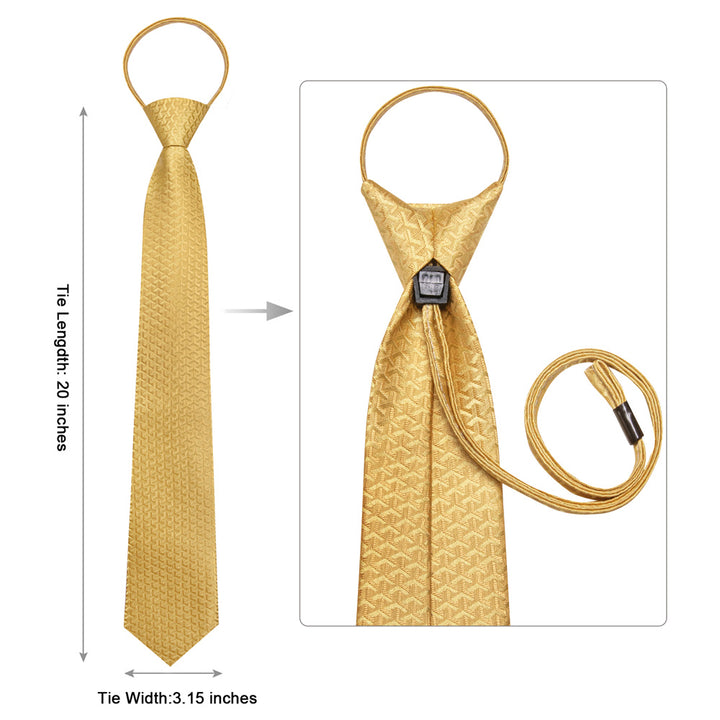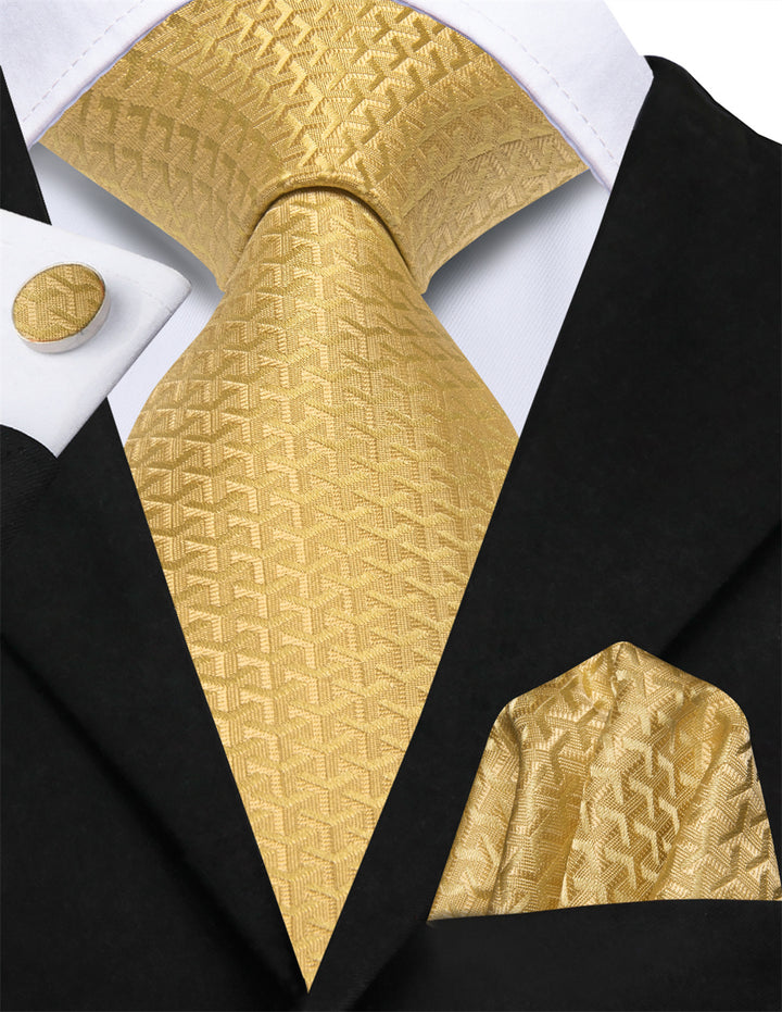 Ties2you Golden Geometric Lazy Mens Business Easy-pull Silk Tie Pocket Square Cufflinks Set