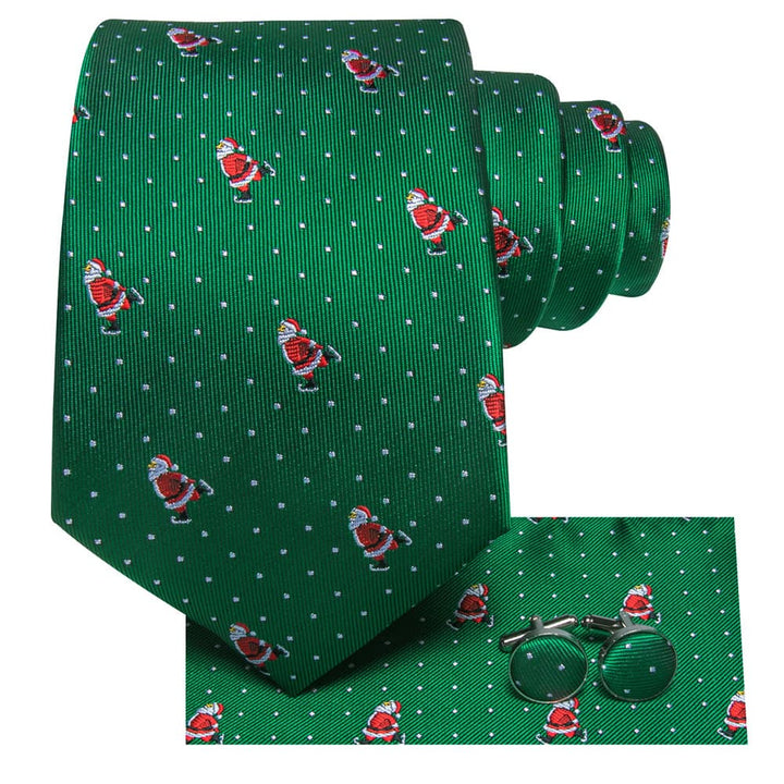 Ties2you Green Red Christmas Santa Claus Polka Dot Necktie Square Cufflinks Set
