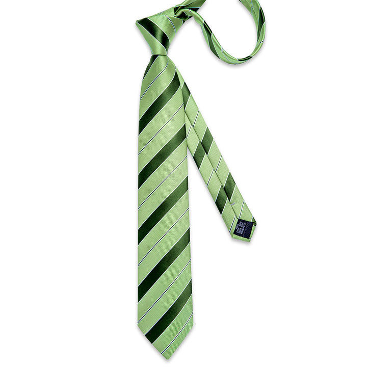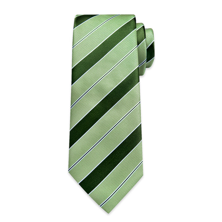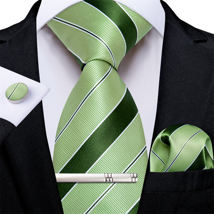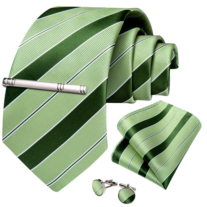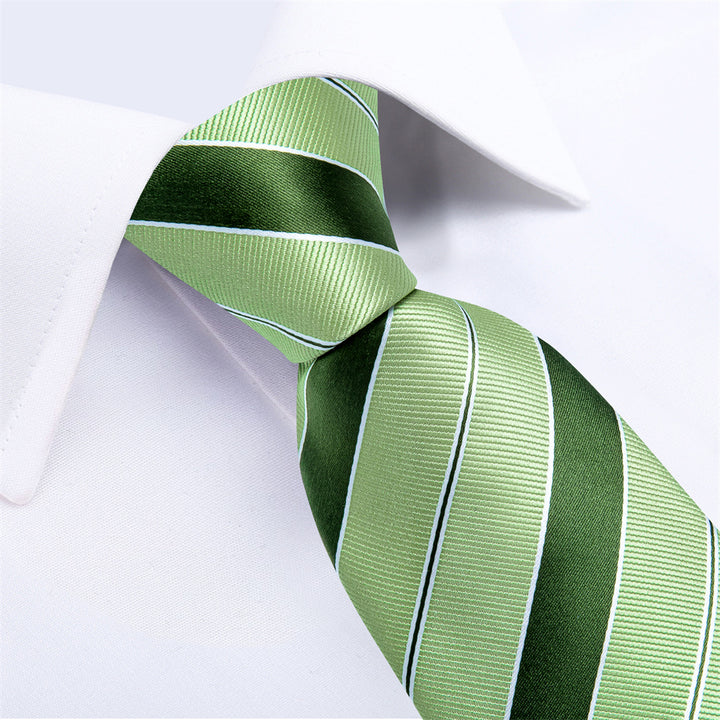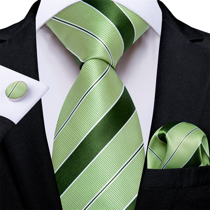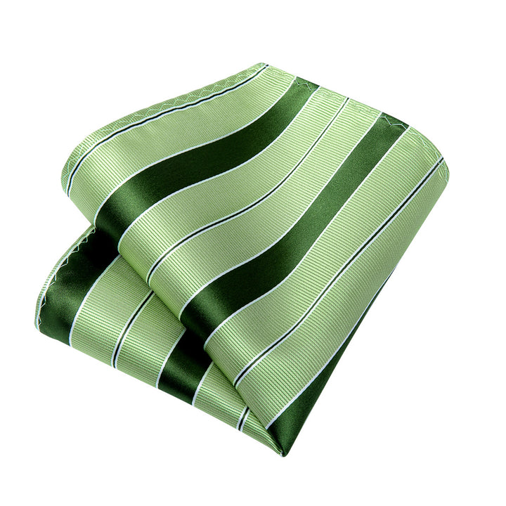 Ties2you Green Striped Men's Tie Pocket Square Cufflinks Set