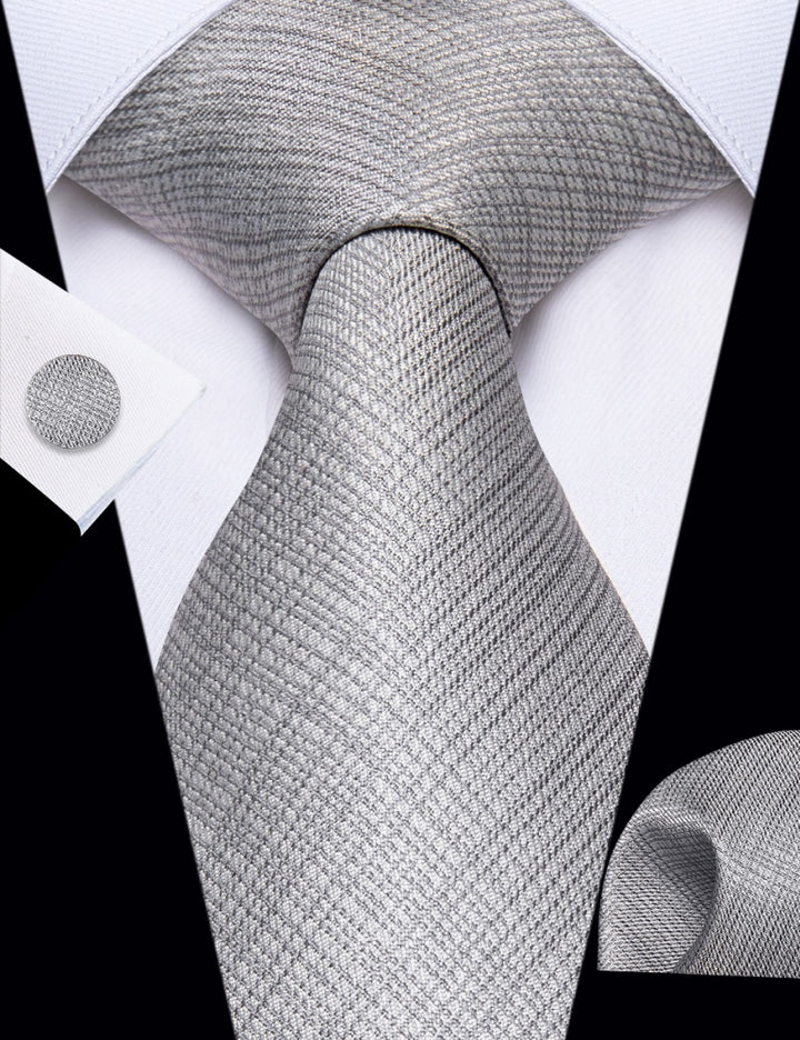 Ties2you Grey Tie Plaid Men's Necktie Pocket Square Cufflinks Set