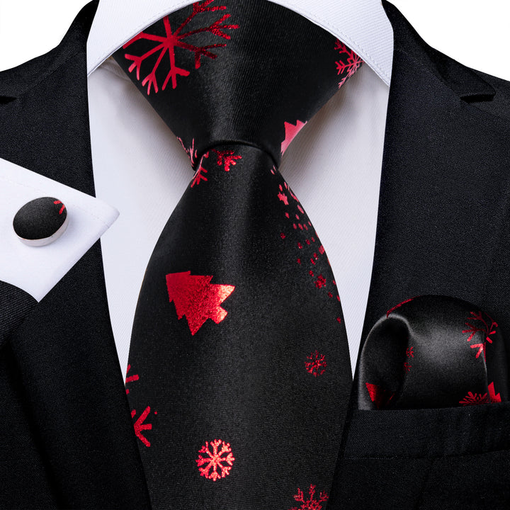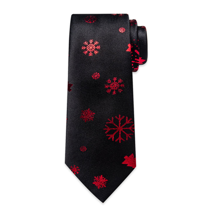 Ties2you Holiday Necktie Black Silk Snowflake Tie Handkerchief Cufflinks Set for Holiday