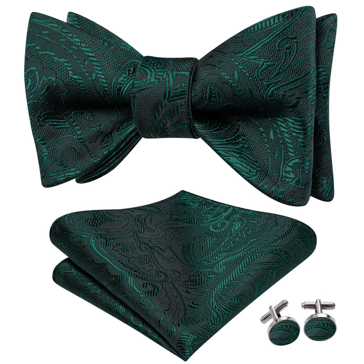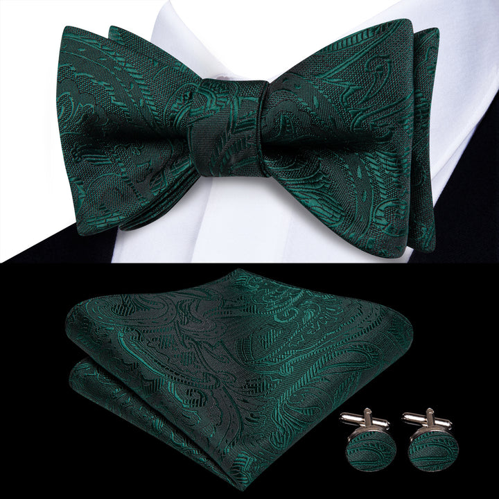 Ties2you Hunter Green Floral Self-tie Bow Tie Pocket Square Cufflinks Set