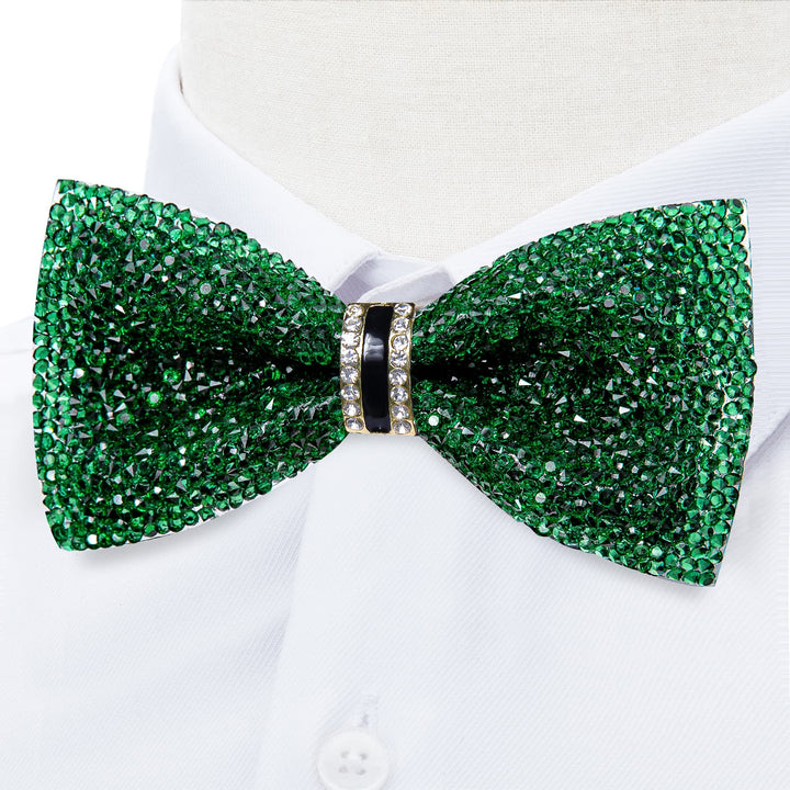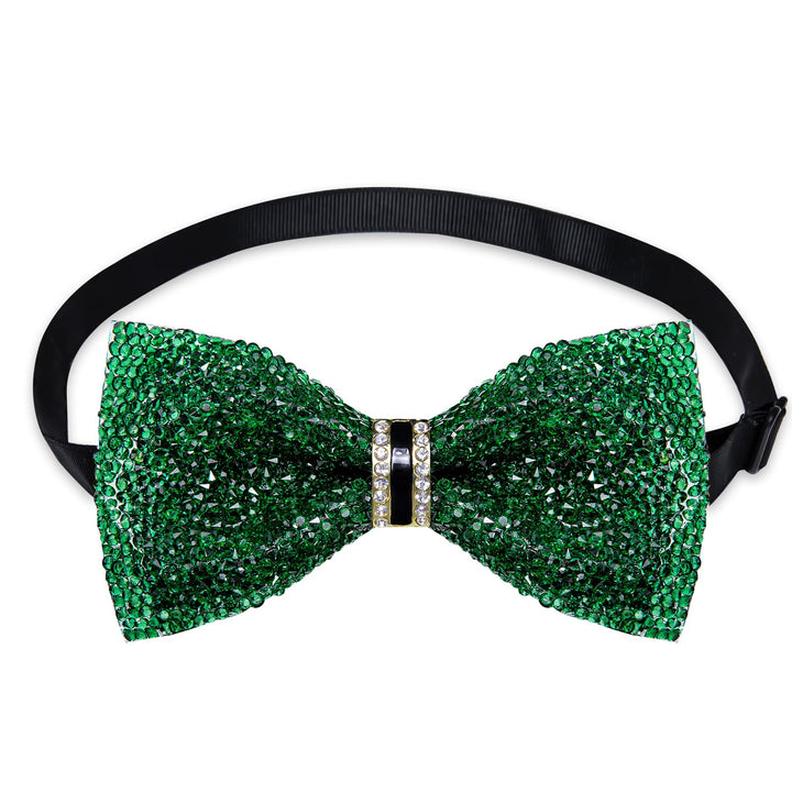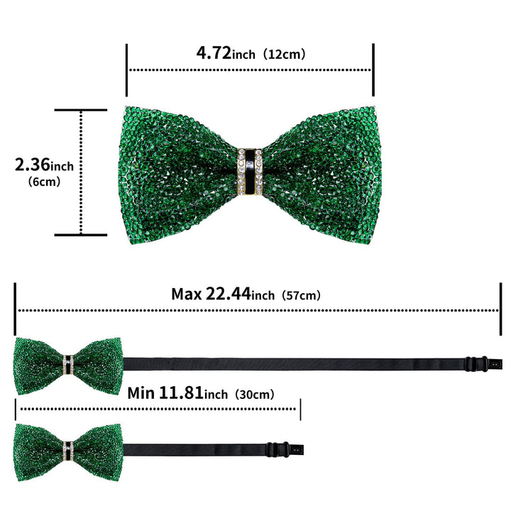 Luxurious Exquisite Emerald Green Imitated Crystal Rhinestone Party Dress Suit Bow Ties -Pre Tied Sequin Adjustable Length Bowties for Mens