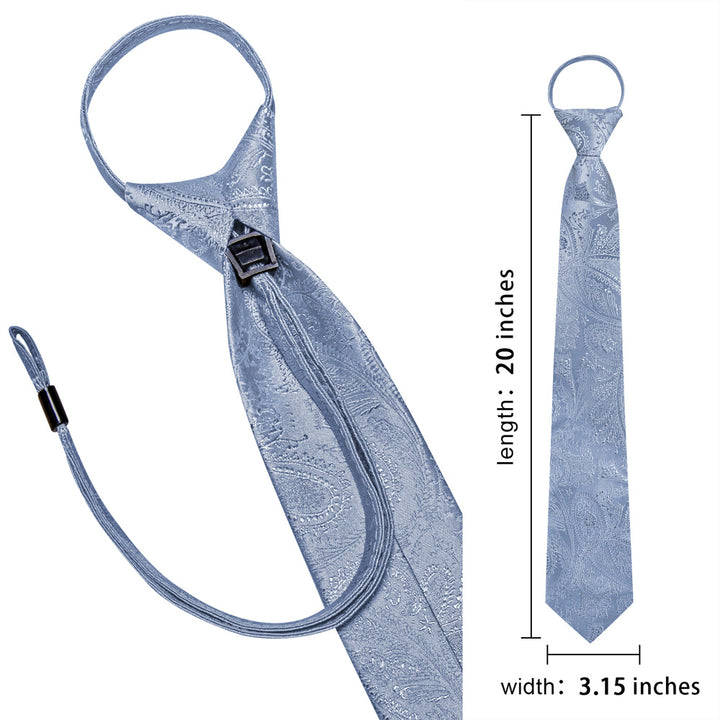Ties2you Light Blue Paisley Lazy Men's Easy-pull Silk Tie Pocket Square Cufflinks Set