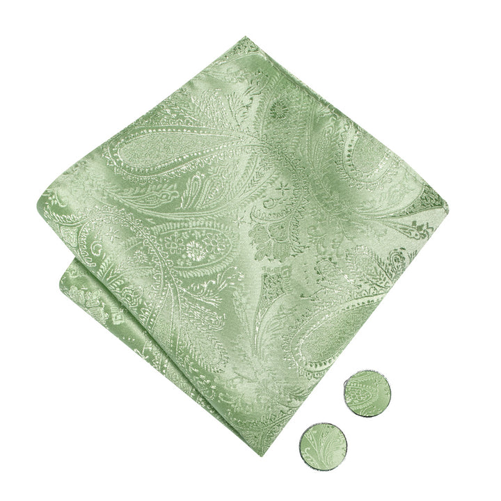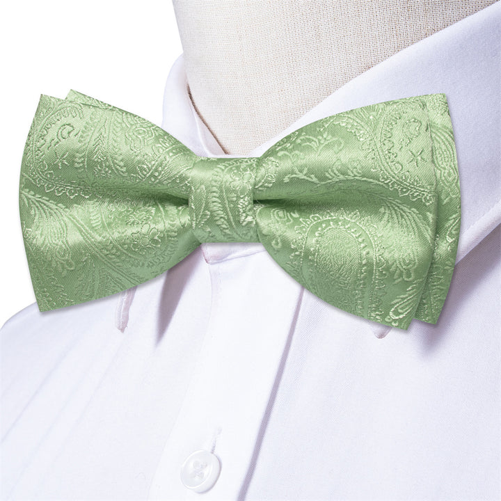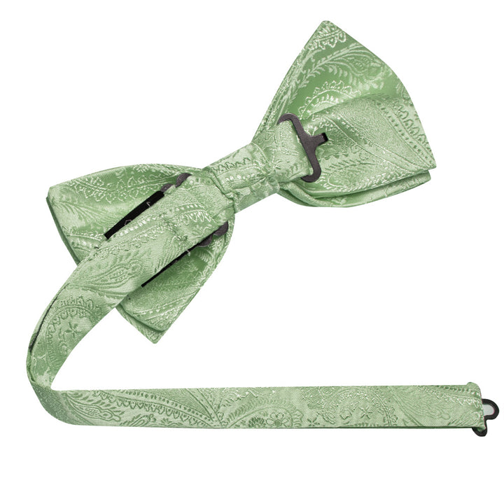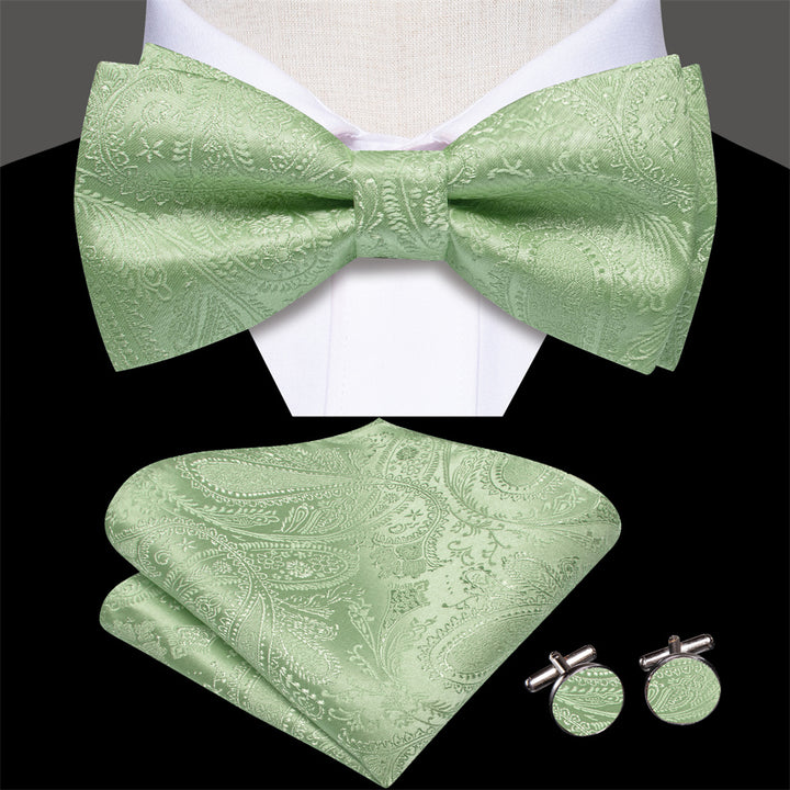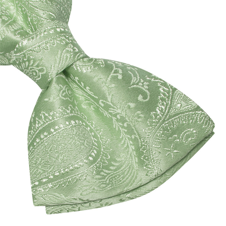 Ties2you Light Green Paisley Pre-tied Bow Tie Hanky Cufflinks Set