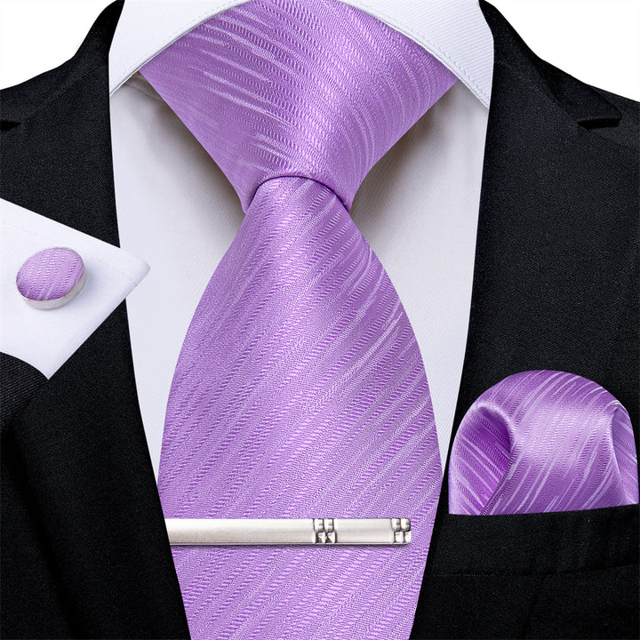 Ties2you Light Purple Fine Striped Men's Tie Hanky Cufflinks Set