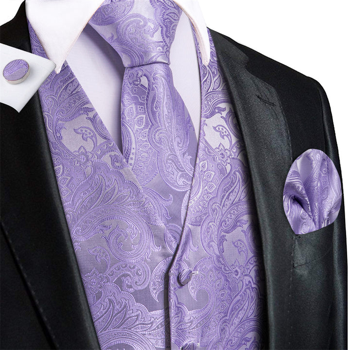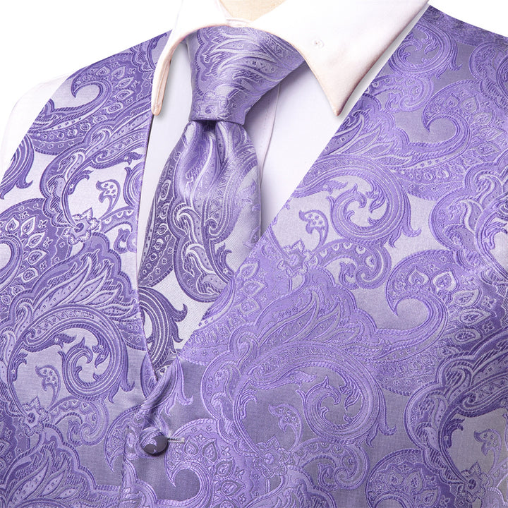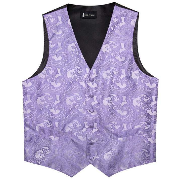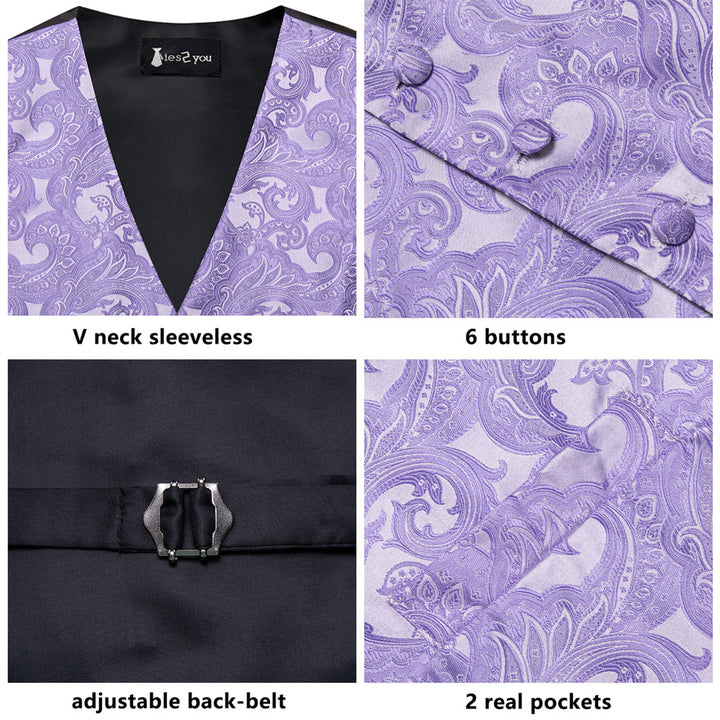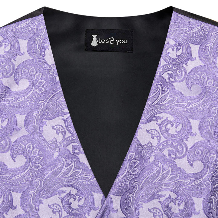 Ties2you Light Purple Paisley Pattern V-Neck Silk Vest Necktie Set