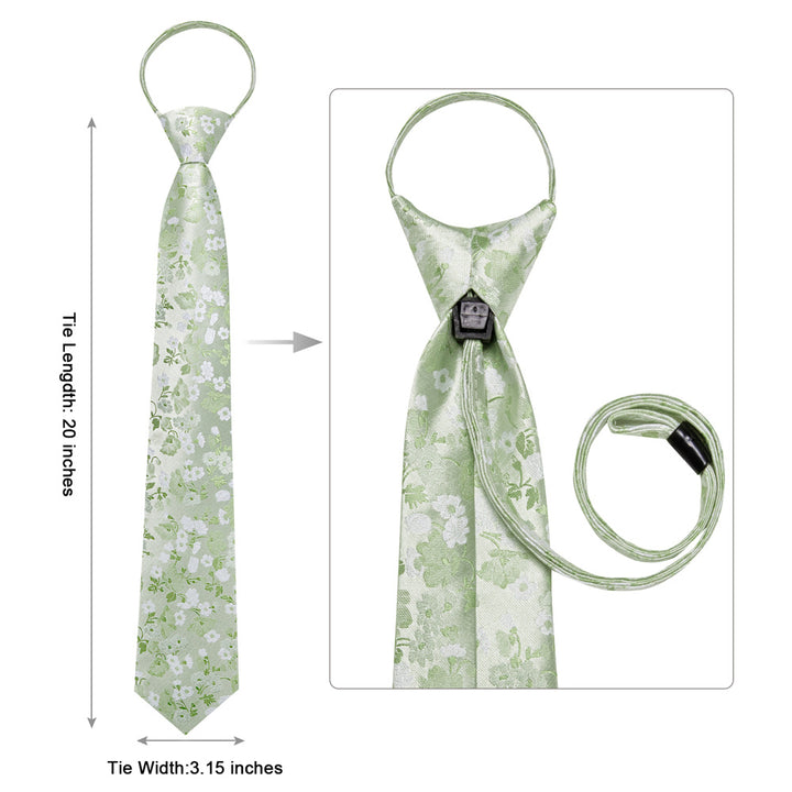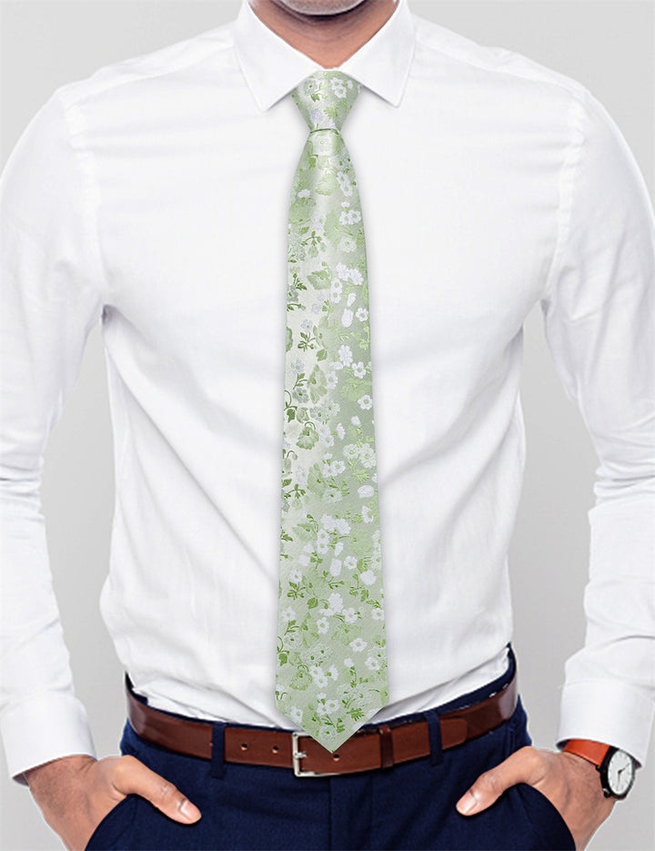 Ties2you Light Sage Green Floral Lazy Mens Easy-pull Silk Tie Pocket Square Cufflinks Set