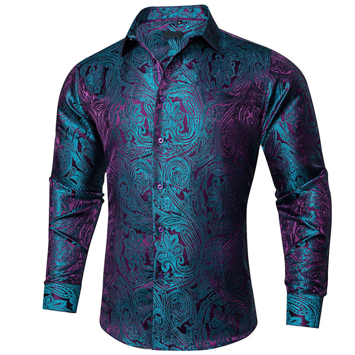 Ties2you Long Sleeve Shirt for Men Teal Button Down Casual Shirt